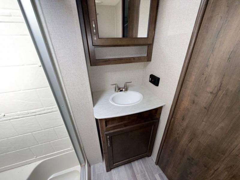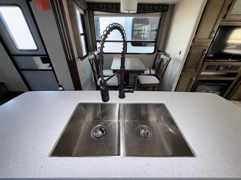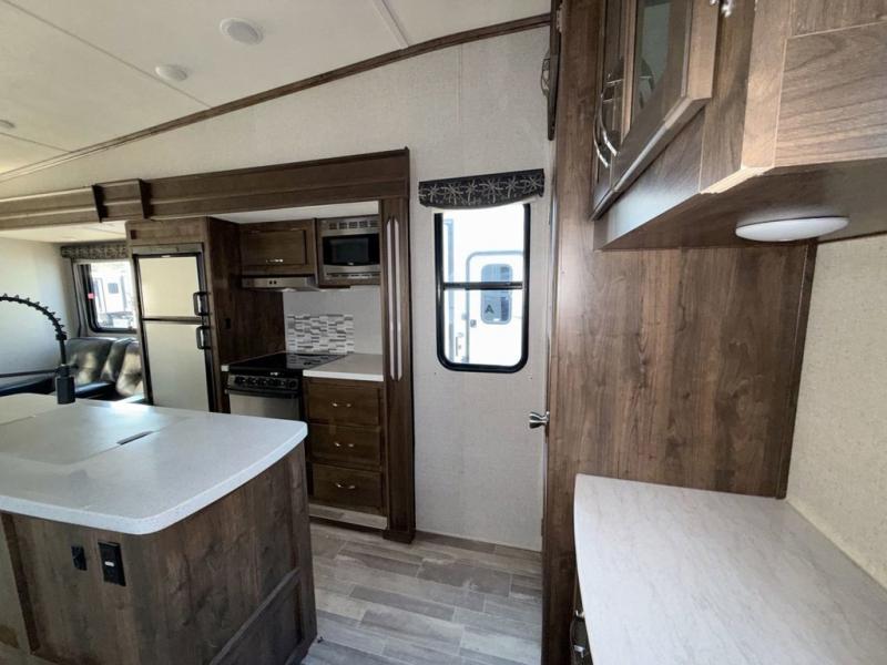 When the outdoors is calling you to adventure, this Astoria is ready to answer! You will find a spacious interior with triple slides including dual opposing slides in the main kitchen/living area. You will love the center island for meal prep and serving, and the double sink facing into the unit makes it easy to be part of the conversation going on while you are preparing meals or cleaning up. A large pantry, overhead storage, and curio cabinet each offer plenty of room for your things. A front private bedroom also provides much needed storage with a slide out wardrobe/linen cabinet for all of your needs. On the outside, create meals and snacks easily while enjoying the fresh air with the outdoor kitchen.