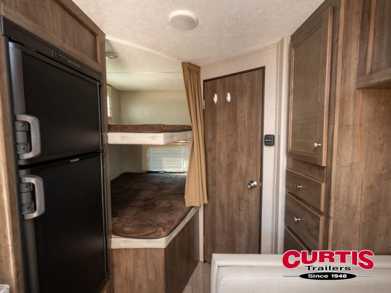 Get away for a family reunion or host a tailgating party for your favorite sports team with this Coleman Lantern LT Series travel trailer. You will appreciate having space to sleep seven people with the double-size bunks, the queen-size bed, and the booth dinette so that no matter where you've chosen to travel, your favorite people can join you. You will also be able to take care of your guests by preparing a scrumptious meal for them in the full kitchen, and anyone who can't wait for dinner to be ready can grab a snack from the pantry.