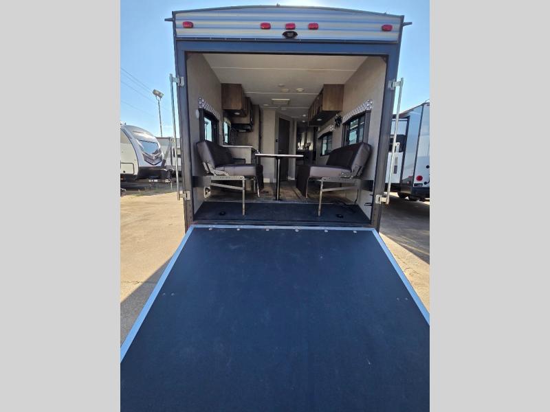 When your off-road toys are calling your name, hitch up this Coleman Lantern Series toy hauler travel trailer to your tow vehicle and hit the road for fun and adventure. You can start thinking about all the places you will ride your toys after a good night's rest in your private master suite with USB outlets. The kids or your buddies can sleep on the dual opposing sofas in the cargo area, and everyone can visit together underneath the 16' electric awning with LED lights outside or relax inside on the two lounge chairs. The dual-entry bath is available when you are ready to get cleaned up. It's time to load up the toys and forget your worries!