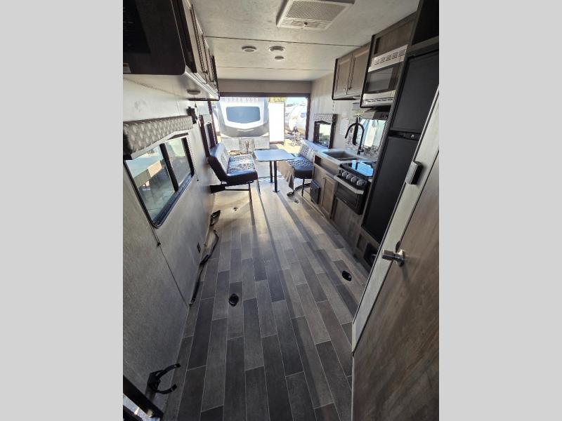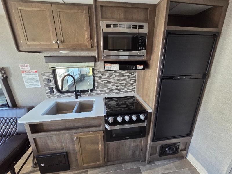 Each Coleman Lantern model by Dutchmen provides amenities and value beyond your imagination. With conveniences such as the thermoformed countertops in the kitchen, a Rest Easy mattress, Everwear luxury furniture, and a solar power charging connection, it is no wonder that the Coleman Lantern is the choice of many outdoor enthusiasts. The under-bed storage is also a fantastic feature because it allows you to keep your belongings safely tucked away and out of sight. The campground awaits you and your family, so get out there in your new Coleman Lantern Series!