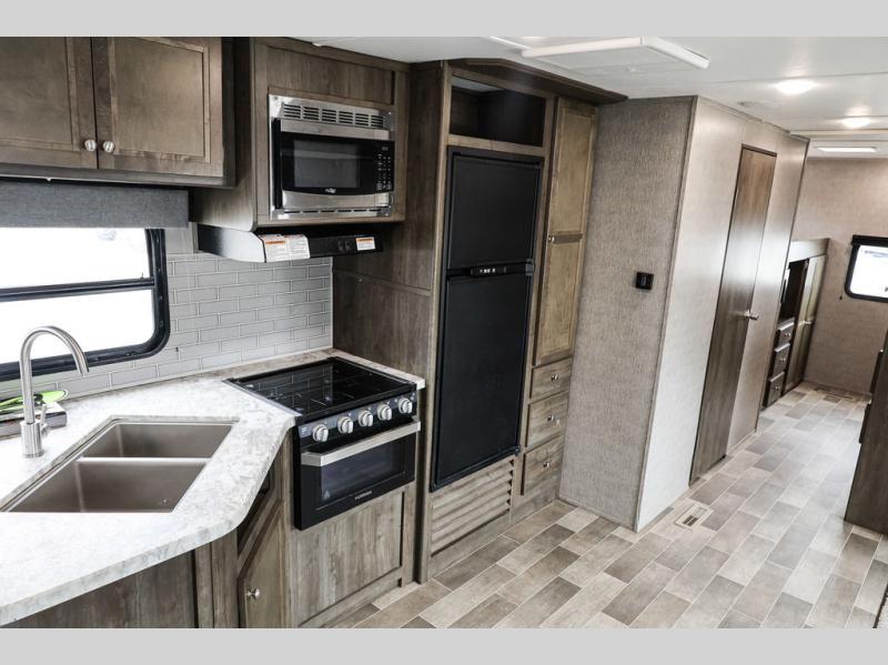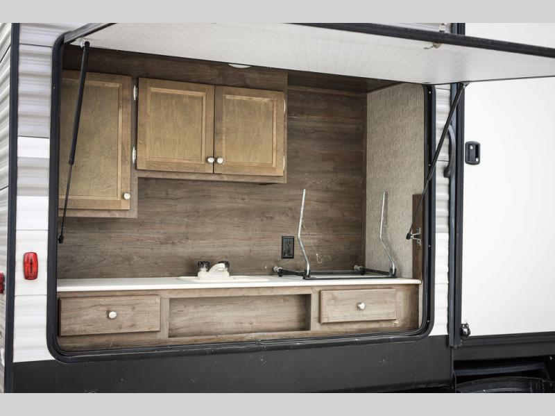 Each Coleman Lantern model by Dutchmen provides amenities and value beyond your imagination. With conveniences such as the thermoformed countertops in the kitchen, a Rest Easy mattress, Everwear luxury furniture, and a solar power charging connection, it is no wonder that the Coleman Lantern is the choice of many outdoor enthusiasts. The under-bed storage is also a fantastic feature because it allows you to keep your belongings safely tucked away and out of sight. The campground awaits you and your family, so get out there in your new Coleman Lantern Series!