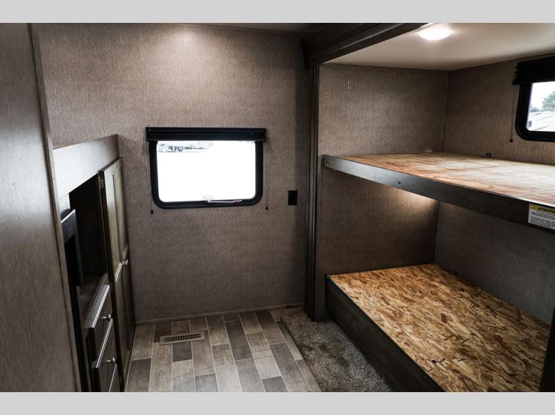This Coleman Lantern Series travel trailer will have you traveling with your family every chance you get! From having your own master bedroom with shirt closets and USB connections to your kids or grandkids having their own bunkhouse on the opposite end, this might be the perfect RV. The kids will have triple bunk beds to choose from, as well as a trundle bed, and the full bathroom even includes the second entry door for quick access when having fun outdoors. The chef can choose to make meals inside with full amenities or outside at the outdoor kitchen.