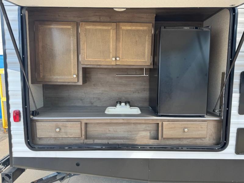 Each Coleman Lantern model by Dutchmen provides amenities and value beyond your imagination. With conveniences such as the thermoformed countertops in the kitchen, a Rest Easy mattress, Everwear luxury furniture, and a solar power charging connection, it is no wonder that the Coleman Lantern is the choice of many outdoor enthusiasts. The under-bed storage is also a fantastic feature because it allows you to keep your belongings safely tucked away and out of sight. The campground awaits you and your family, so get out there in your new Coleman Lantern Series!