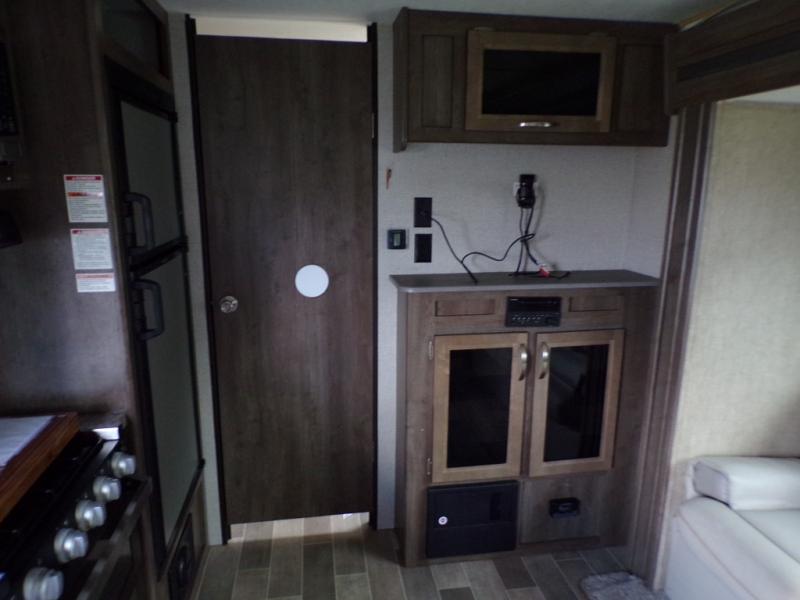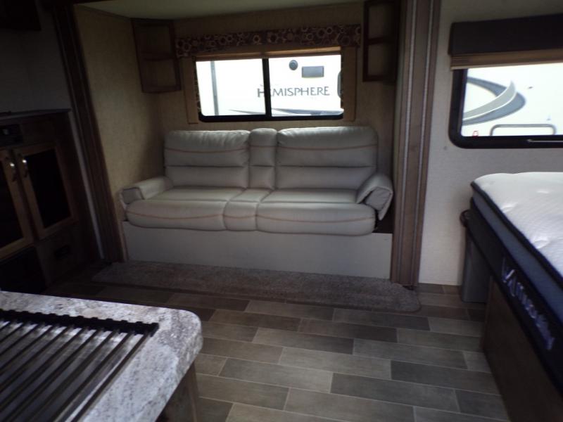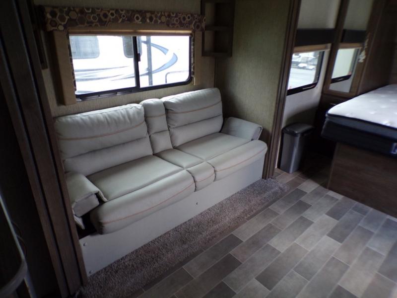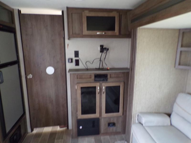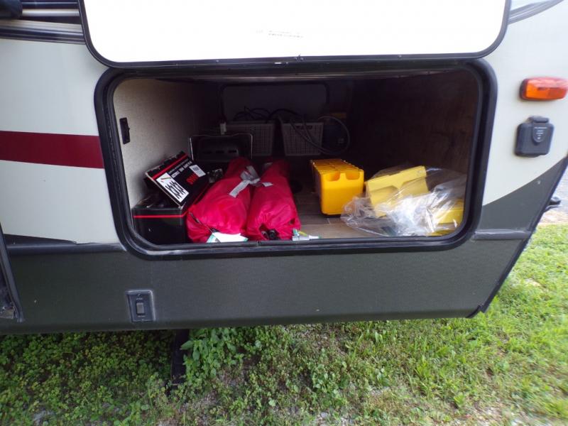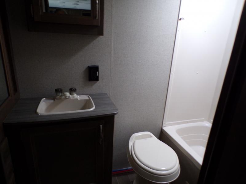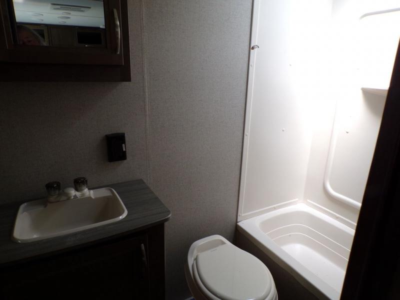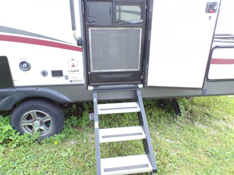 Take one look inside this Coleman Light travel trailer and you will throw away your tent. The handy single slide out fold-down sofa. The queen bed at the front of the trailer is perfect for a good night's rest, and with nightstands on both sides of the bed, you'll have a place for your things. The rear bath includes a tub which is helpful when it's bath time for the little ones.