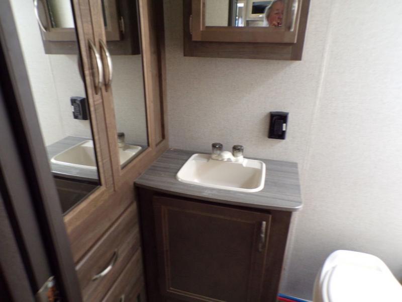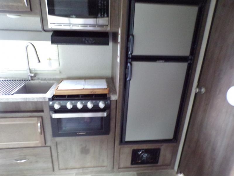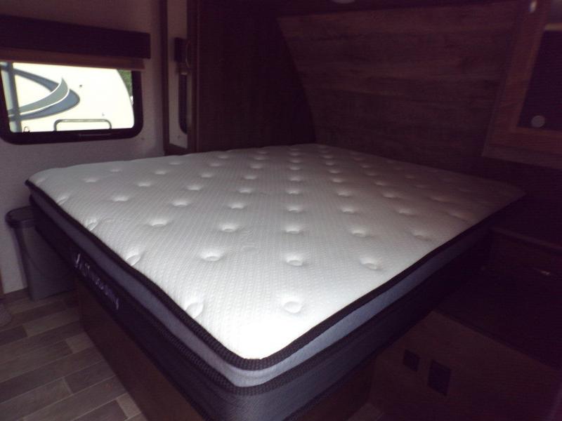 Upgraded deluxe mattress, great storage space, sturdy entrance steps and electric front jack and stabilizers. Oven and two door refrigerator, large microwave, double basin kitchen sink with butcherblock chopping board. Very nice unit.