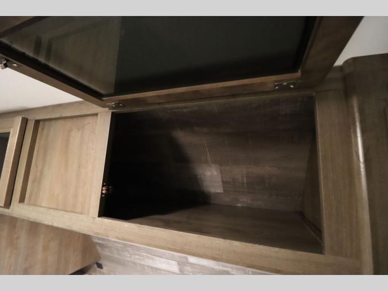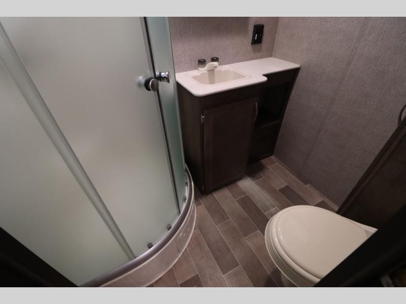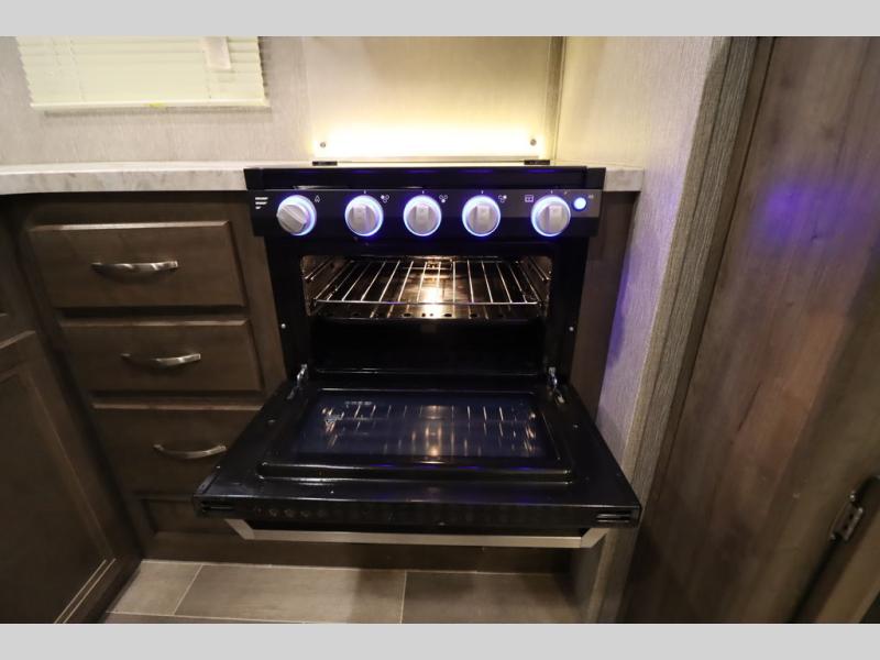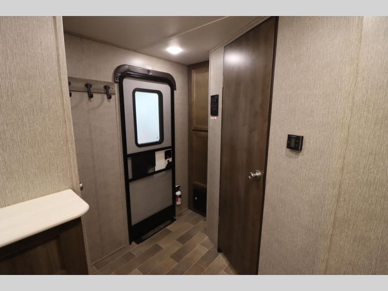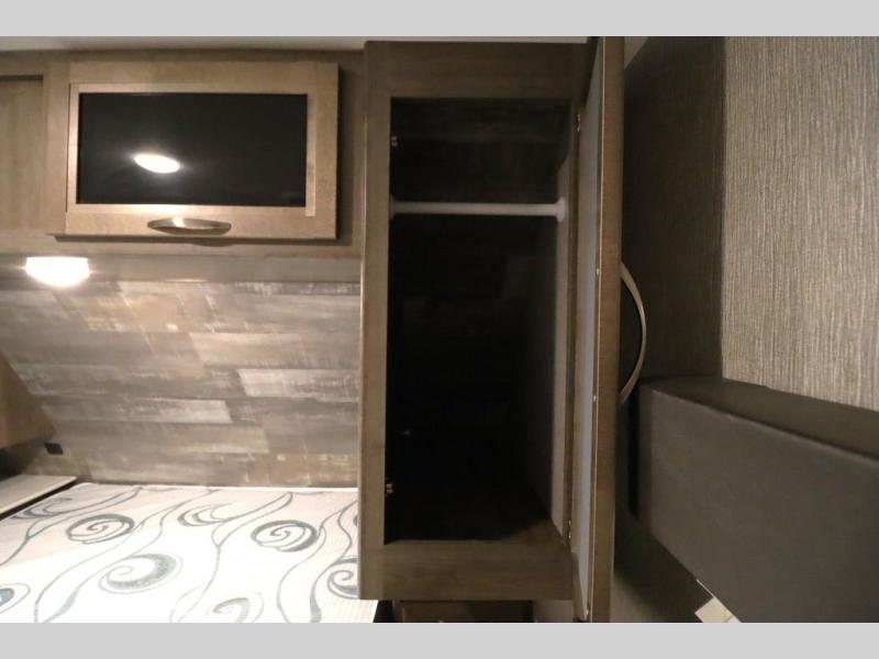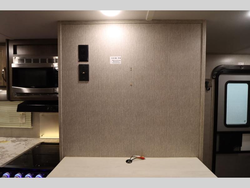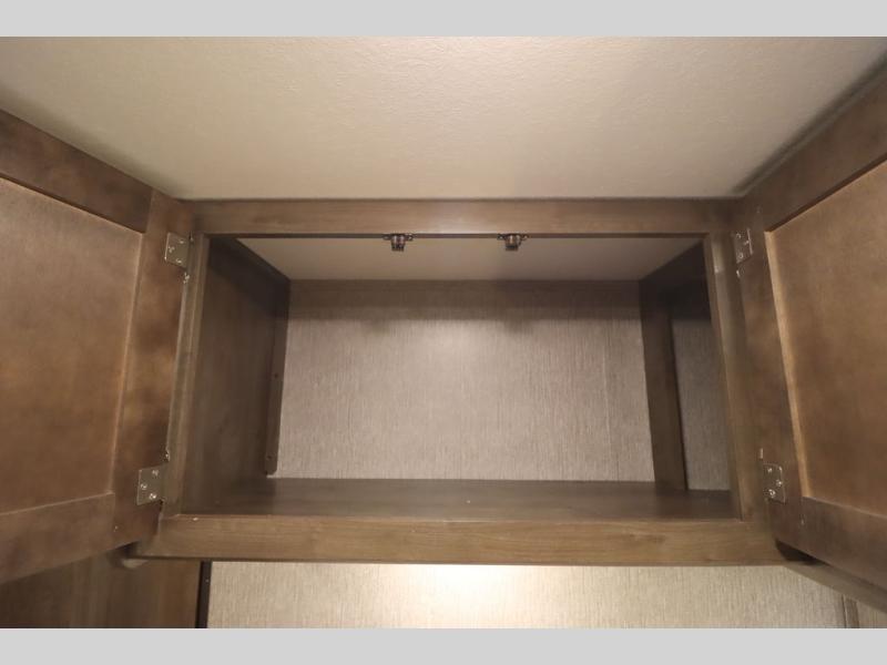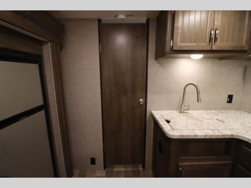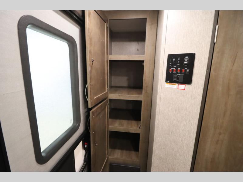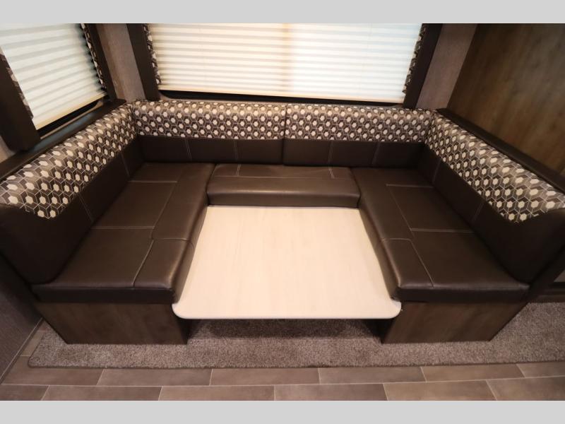 Step inside this travel trailer with a single slide for a fun and relaxing getaway with family. The U-shaped dinette is perfect for meal times and can also be used for additional sleeping space once folded down. You will enjoy the front private bedroom that features a queen Rest Easy mattress, and nightstands on both sides of the bed. This unit includes a three burner range to cook a meal just like you do at home, and plenty of counter space. As soon as you enter the trailer, you'll find a pantry and a walk-in closet with shelves that is perfect for shoes and jackets.