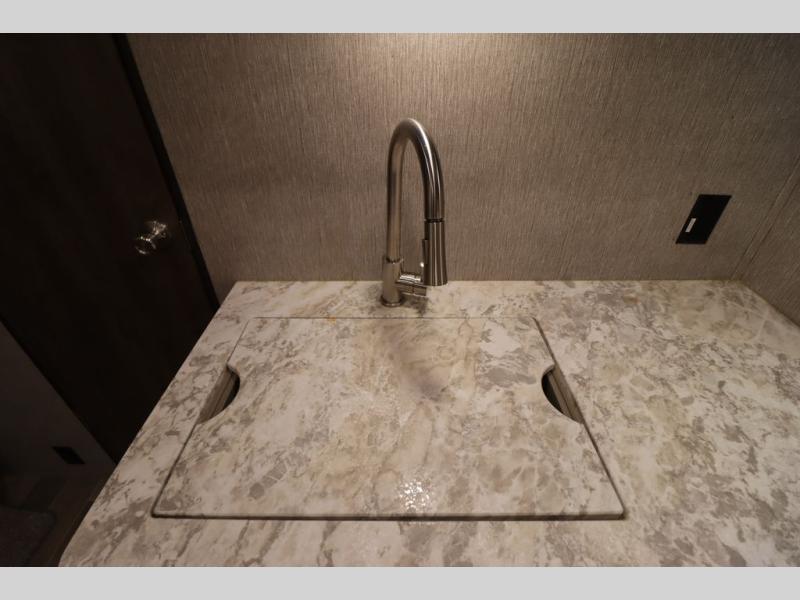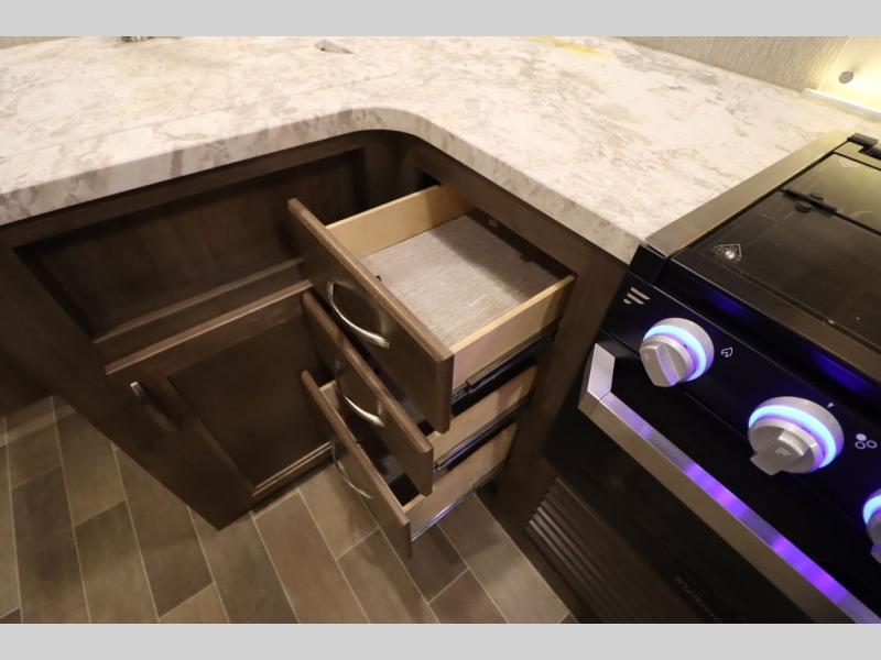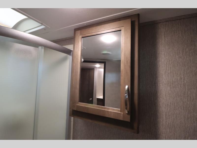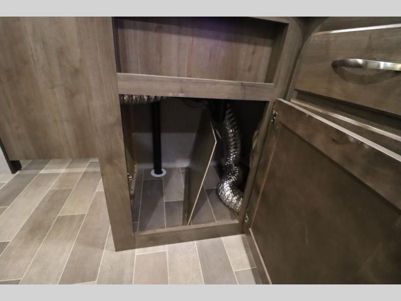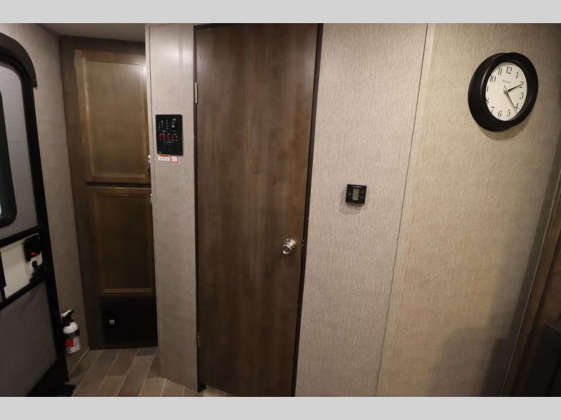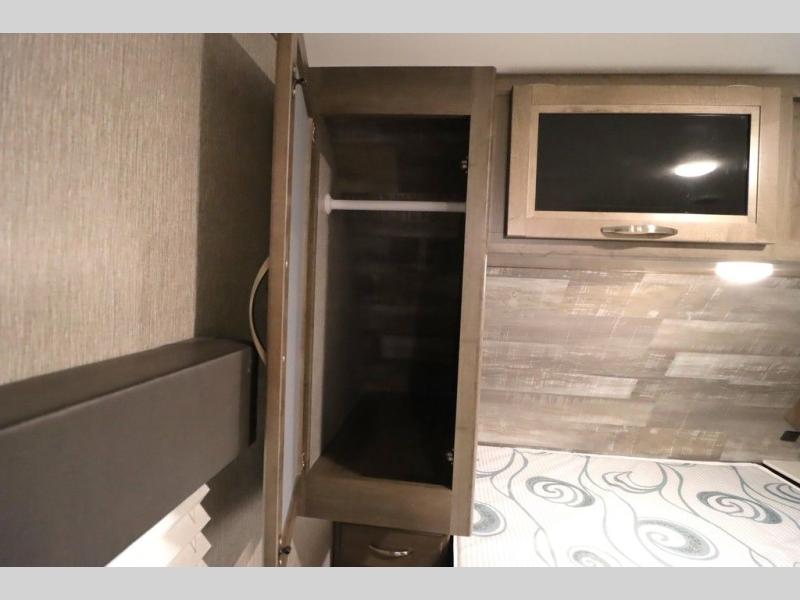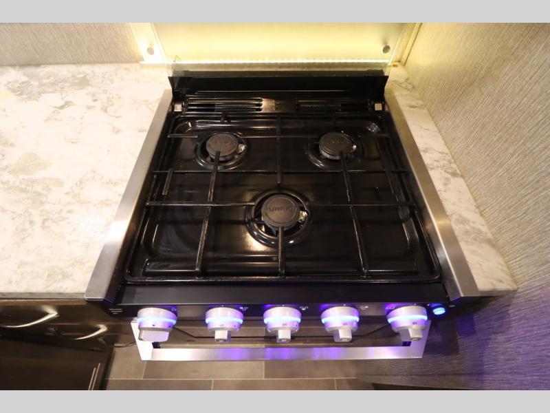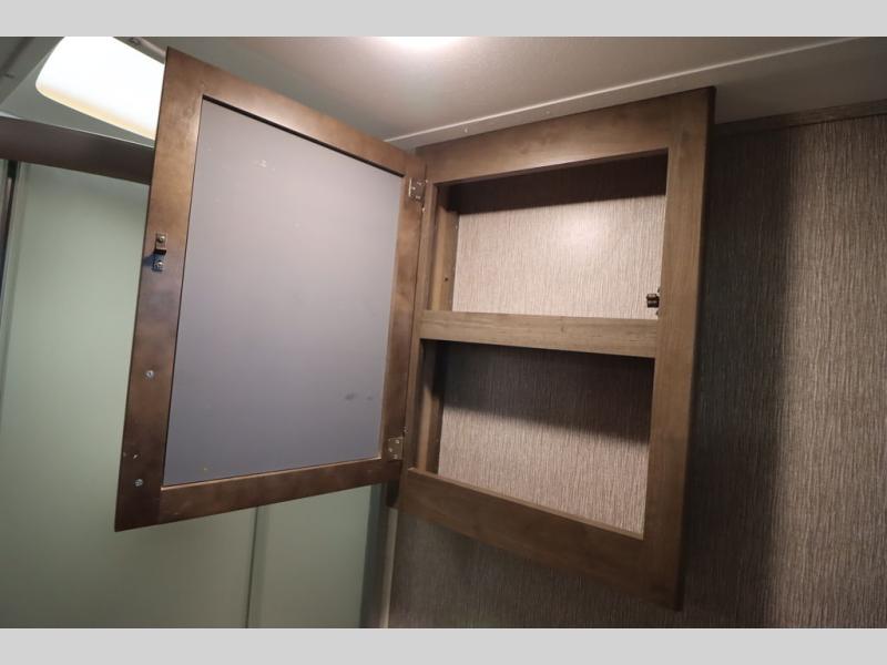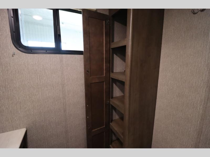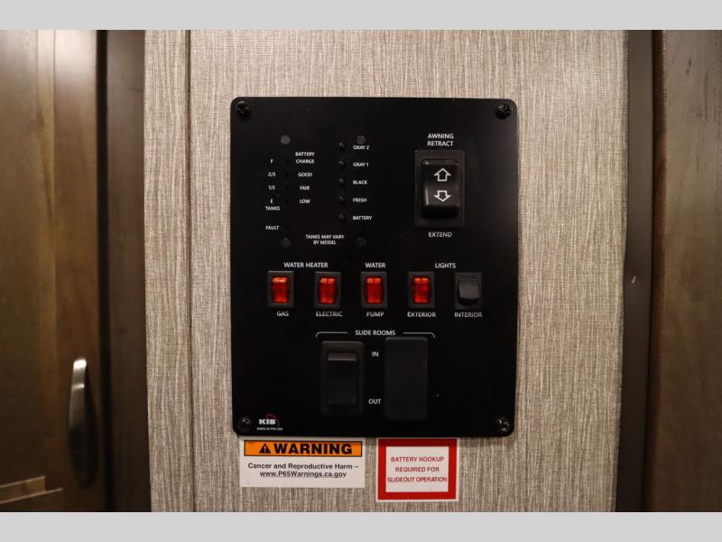 Step inside this travel trailer with a single slide for a fun and relaxing getaway with family. The U-shaped dinette is perfect for meal times and can also be used for additional sleeping space once folded down. You will enjoy the front private bedroom that features a queen Rest Easy mattress, and nightstands on both sides of the bed. This unit includes a three burner range to cook a meal just like you do at home, and plenty of counter space. As soon as you enter the trailer, you'll find a pantry and a walk-in closet with shelves that is perfect for shoes and jackets.