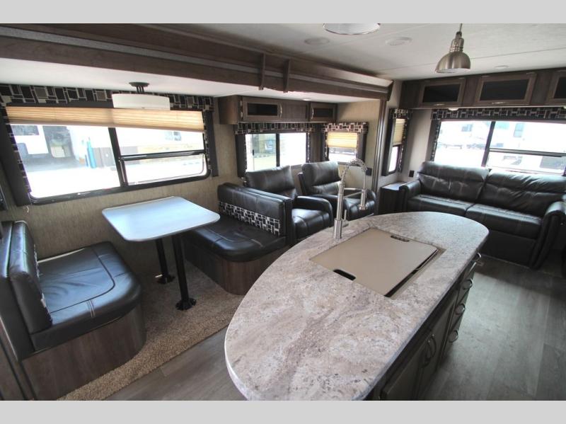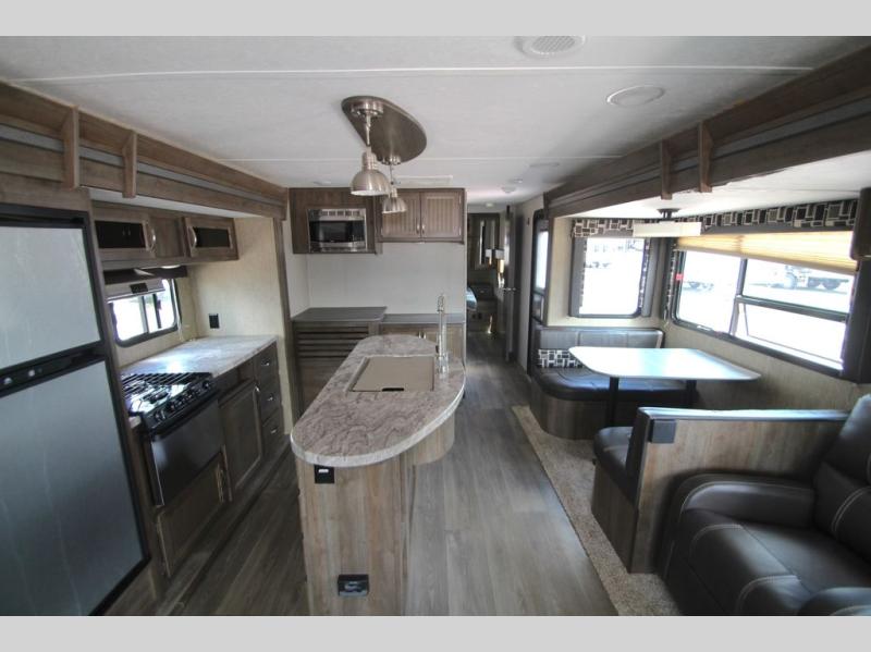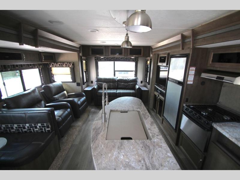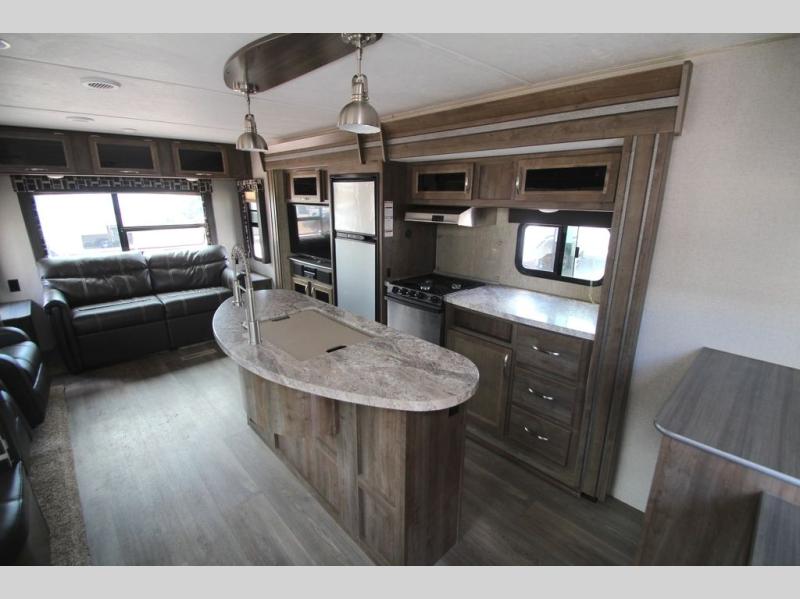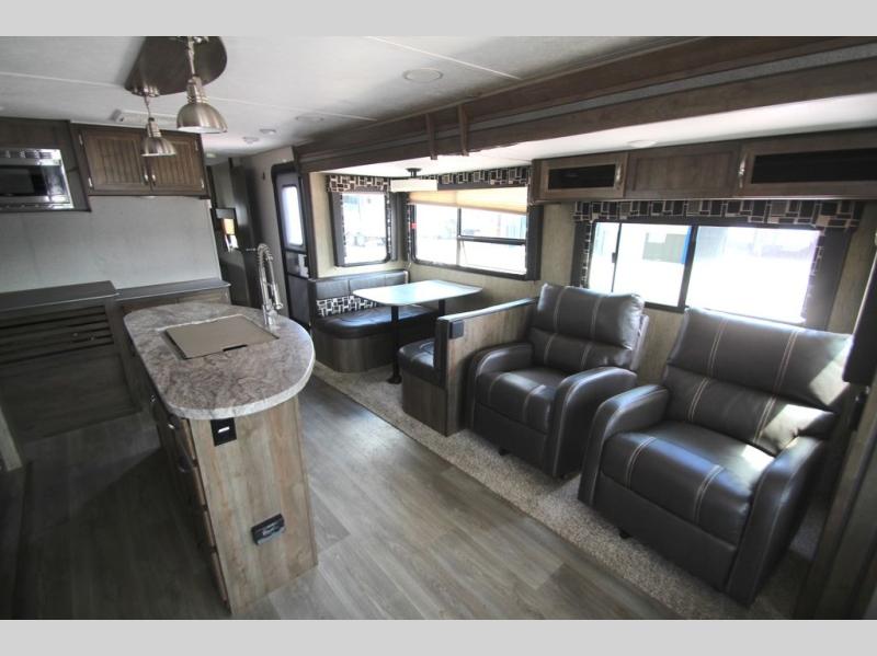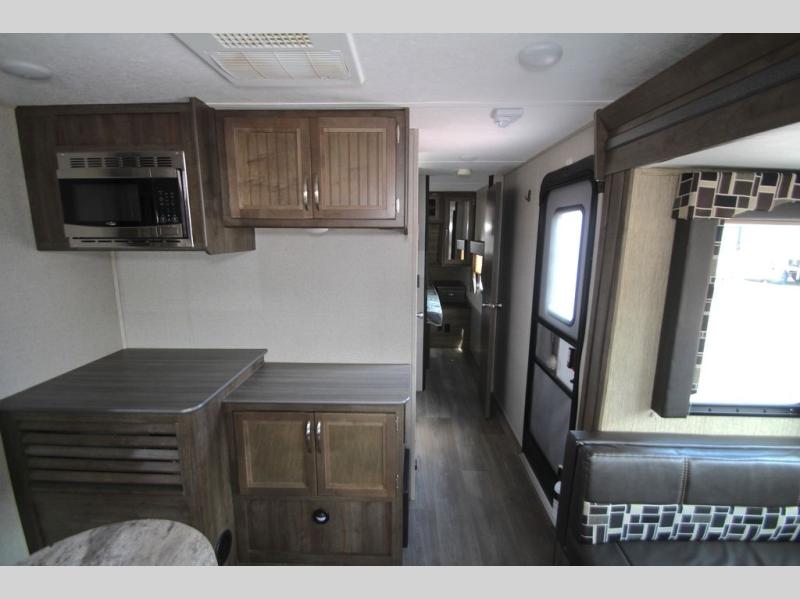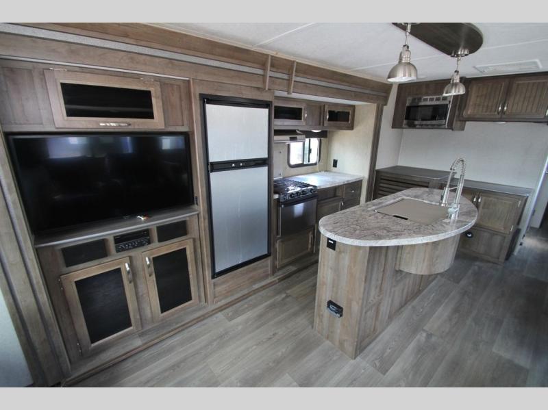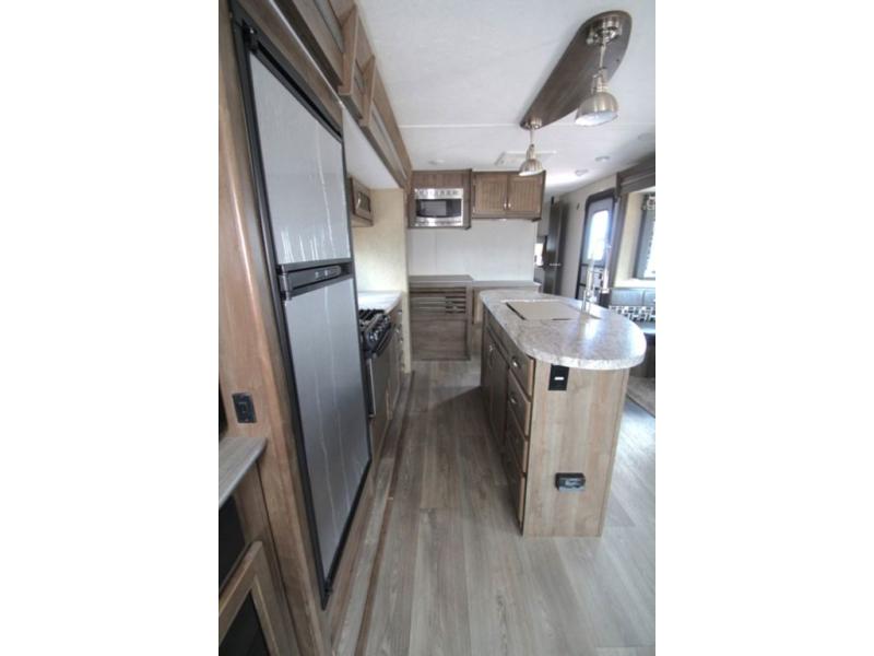 Step inside this Coleman Light travel trailer and you will be amazed by all the interior space the dual opposing slides provide. You can comfortably sleep six people each night, so invite the grandparents to make some memories. This unit features a rear living area with two recliners so you can kick back and relax. The kitchen island includes a double sink and extra counter space to prep meals. After a day at the lake, clean up in the full bath that includes a second entrance into the front bedroom. Here, you'll enjoy a queen Rest Easy mattress, and nightstands for your things.