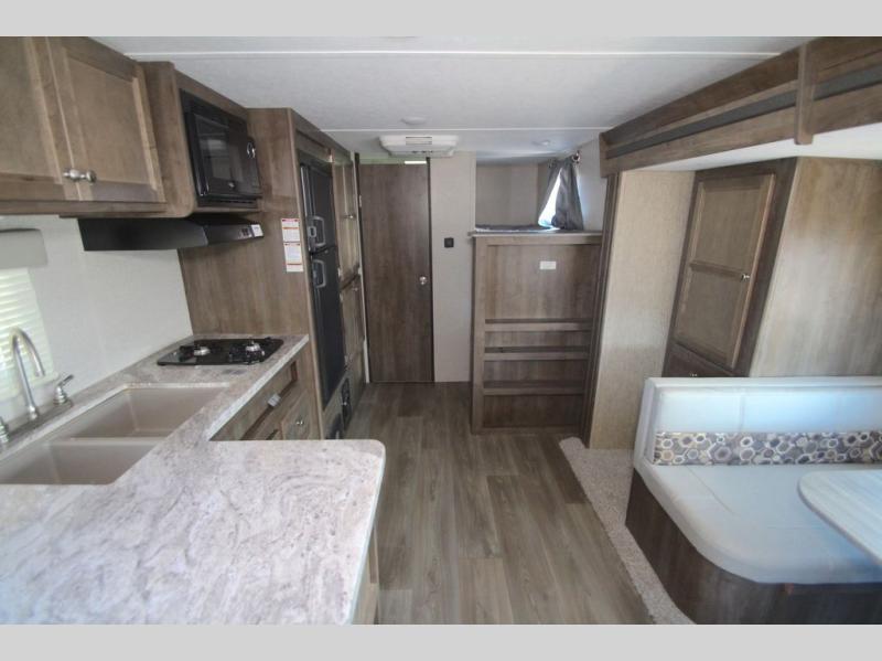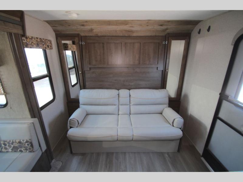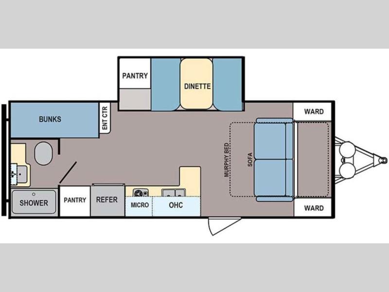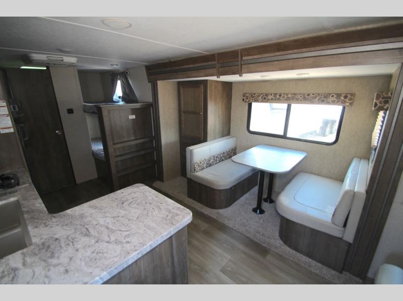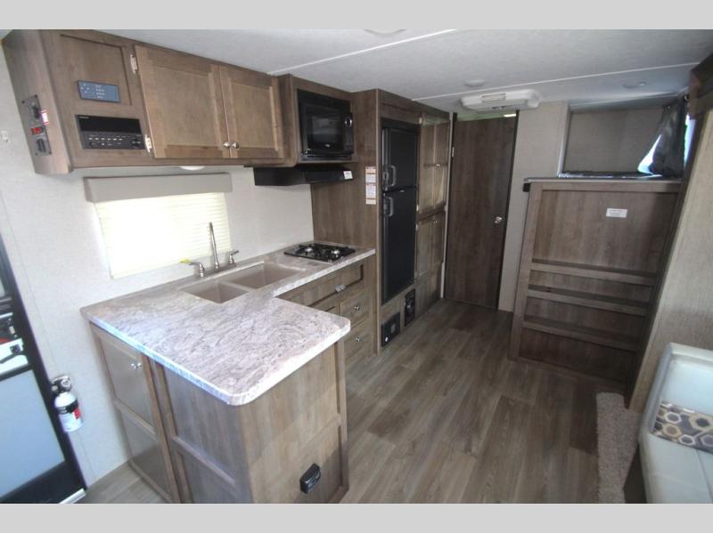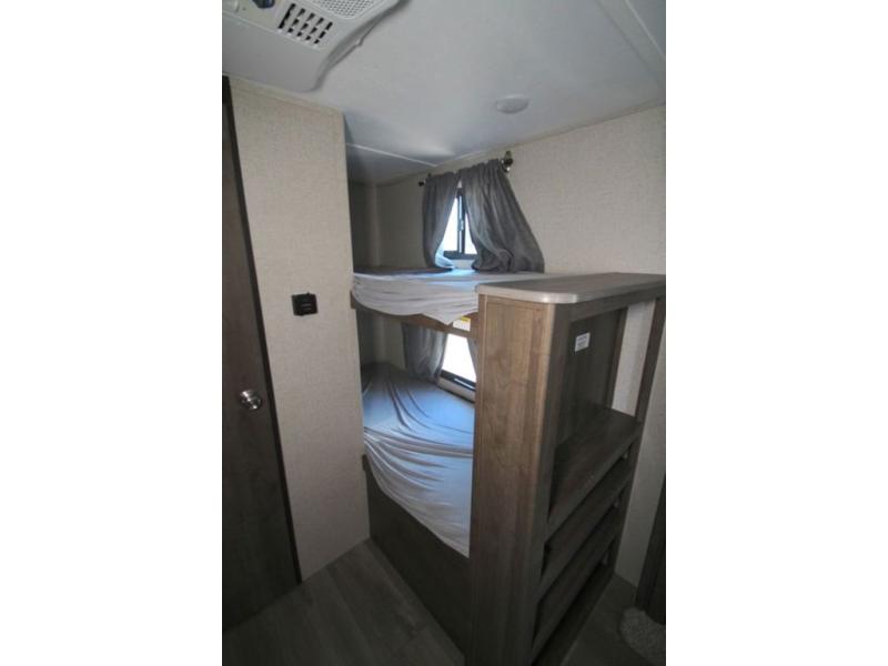 Get ready for your next adventure with this easy to tow travel trailer. This Coleman Light LX with a single slide has utilized the front of the unit as a living area with a comfy sofa, and a bedroom at night when the Murphy bed is set up. The dinette within the slide provides dining and extra sleeping space when needed. You also have the convenience of a full kitchen with an L-shaped counter, and a full bath. The kids will love the bunk beds to climb into each night. Load up the family and start making memories that will last a lifetime!