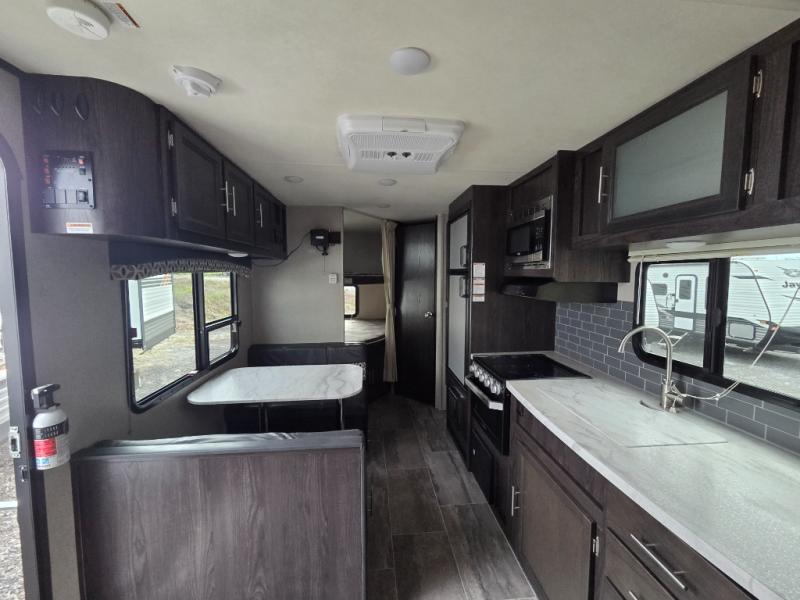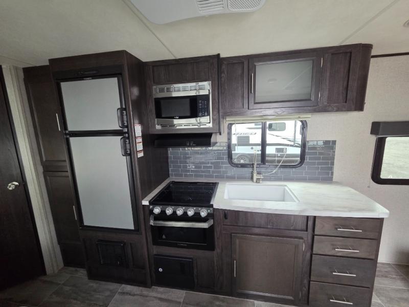 Looking for a comfortable RV that you can stay in during any season? This travel trailer will allow you and your family to sleep, cook, dine and get cleaned up anywhere you desire. The set of double size bunk beds provides your kiddos and their friends a place to call their own and not just at night, plus the queen bed up front allows you to sleep after a fun day of hiking, biking and exploring with your children. You even have the choice of cooking outdoors on the outside kitchen. Take a look around, this is the one!