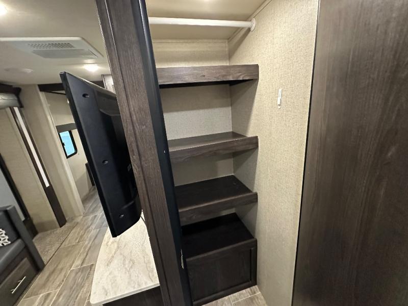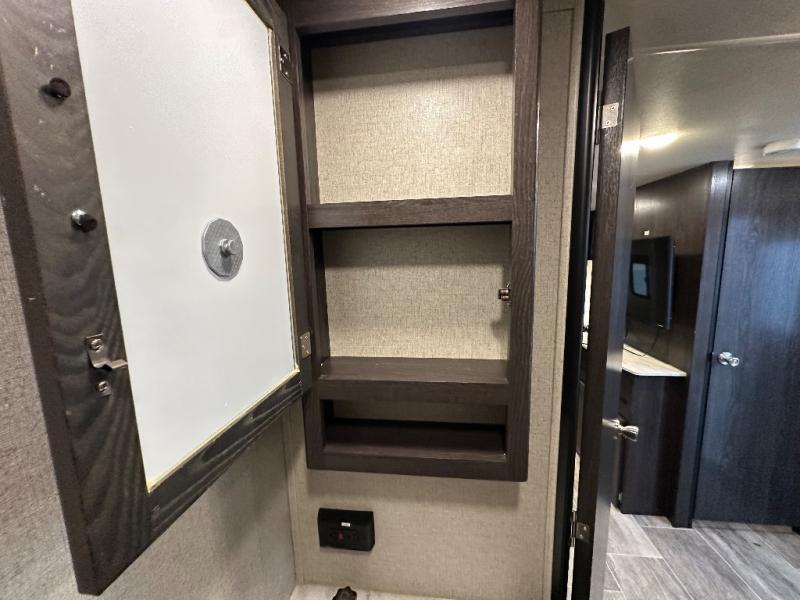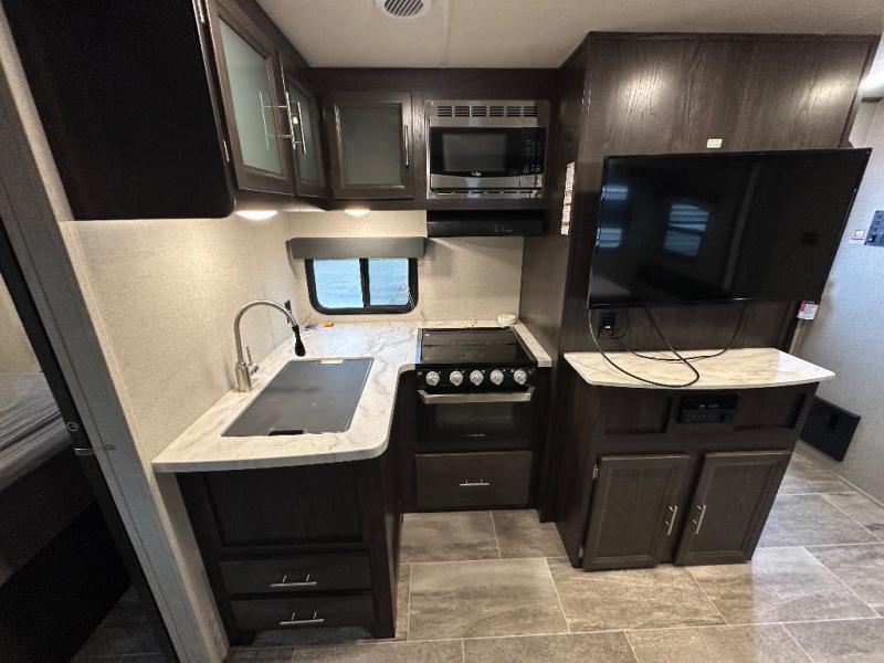 Grab seven of your closest friends, or your large family, and head out with this bunk model in tow! You will love that it easily sleeps between six and eight with a front private bedroom including a queen bed, and a set of double bed bunks in back. The U-shaped dinette can also be used for one or two more to sleep on, and with the large slide out a few friends might not mind grabbing floor space to be included in on the fun. The outdoor kitchen will make cooking for the whole gang super easy by adding two more cooktop burners, and it also allows you to spend as much time outdoors as possible with everything easily accessible. Head out today!