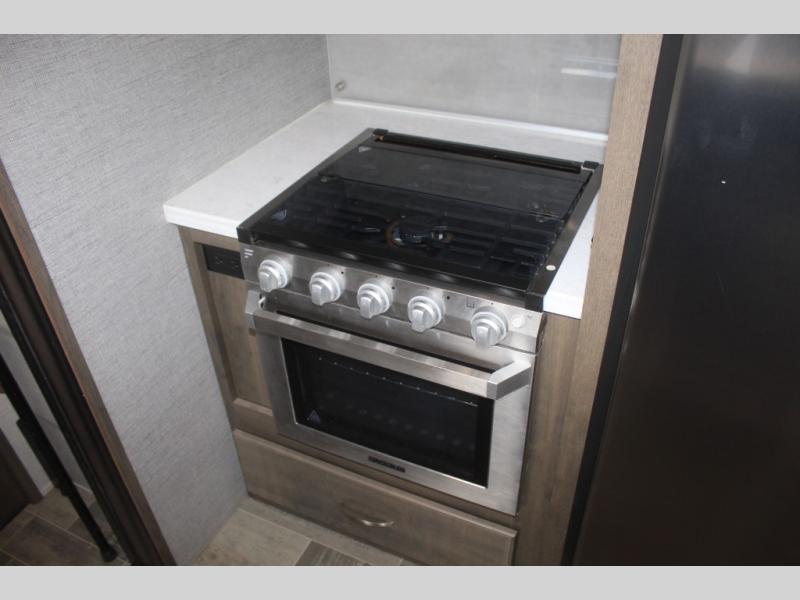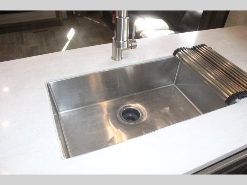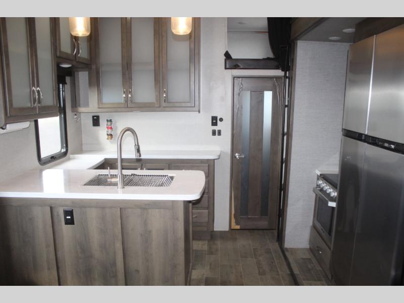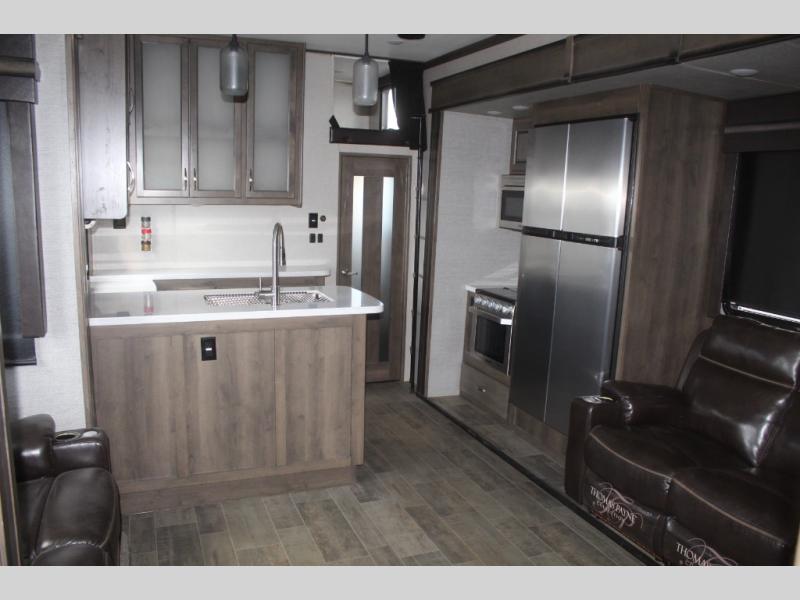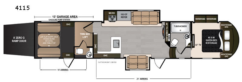 Even though the Dutchmen Voltage is the most popular fifth wheel toy hauler in its class, you don't have to own toys to want or own any one of these units. These haulers are so versatile that just having the added garage space allows you so many more camping options. Just think of how much gear you can take along for your favorite activities and outdoor games. Each rear ramp can be positioned horizontally for you to add optional awnings, screen rooms, and side rails to create a rear patio. On the inside, you will find that Voltage offers higher ceilings for a spacious open feel, residential furnishings, a gourmet kitchen with solid surface countertops, and hardwood cabinetry as well. And, with the 30 gallon gasoline fuel station, standard on every model, you can be sure that you can indeed bring all of the toys for the weekend and beyond! So, for camping that requires your favorite outdoor toys, or even a backyard patio, choose any Dutchmen Voltage FW toy hauler and begin planning your next family adventure