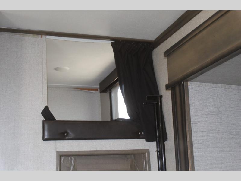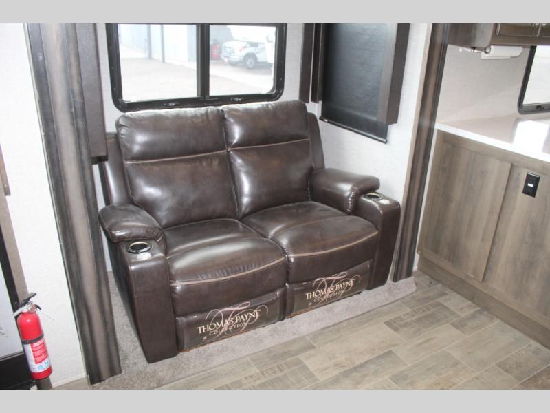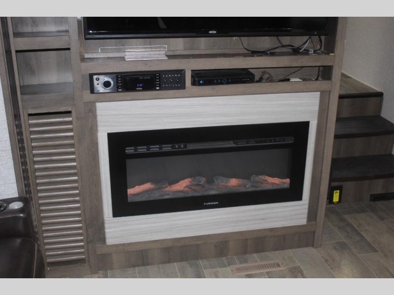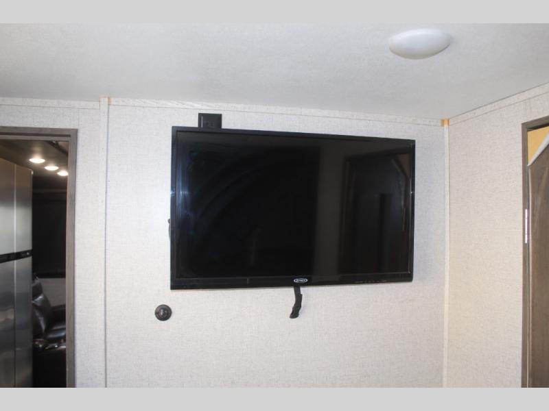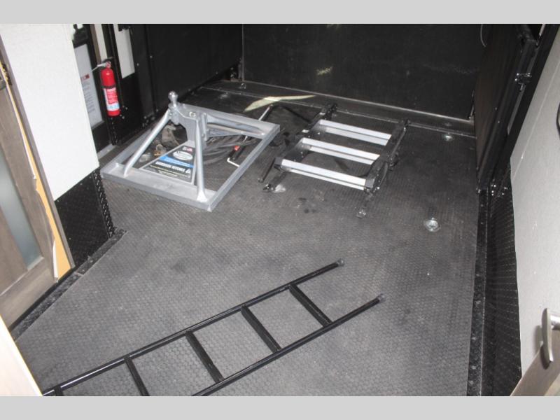 Head out for a fun-filled weekend with this Voltage toy hauler loaded and hitched up to your tow vehicle. With 13' of garage space that includes an overhead twin loft and a lay flat Happi-Jack power bunk with sofas and table top you will easily be able to take along a few friends! The private garage space even has its own half bath too so trail riders and adventure seekers of all kinds can easily access it when they need a bathroom break. When you are ready for some down time, you will enjoy the 46" TV and fireplace while you kick back on the sofa, or keep it all outdoors under the 21' main awning where you will find an outdoor entertainment center that you can enjoy even after the sun goes down.