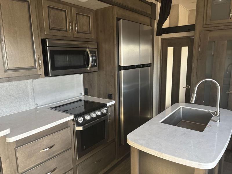 Even though the Dutchmen Voltage is the most popular fifth wheel toy hauler in its class, you don't have to own toys to want or own any one of these units. These haulers are so versatile that just having the added garage space allows you so many more camping options. Just think of how much gear you can take along for your favorite activities and outdoor games. Each rear ramp can be positioned horizontally for you to add optional awnings, screen rooms, and side rails to create a rear patio, or even a set of steps to the ground. On the inside, you will find that Voltage offers higher ceilings for a spacious open feel, residential furnishings, a gourmet kitchen with solid surface countertops, and hardwood cabinetry as well. And, with the 30 gallon gasoline fuel station, standard on every model, you can be sure that you can indeed bring all of the toys for the weekend and beyond! So, for camping that requires your favorite outdoor toys, or even a backyard patio, choose any Dutchmen Voltage FW toy hauler and begin planning your next family adventure!