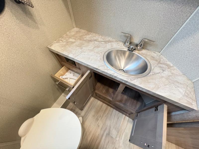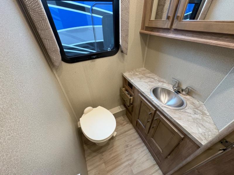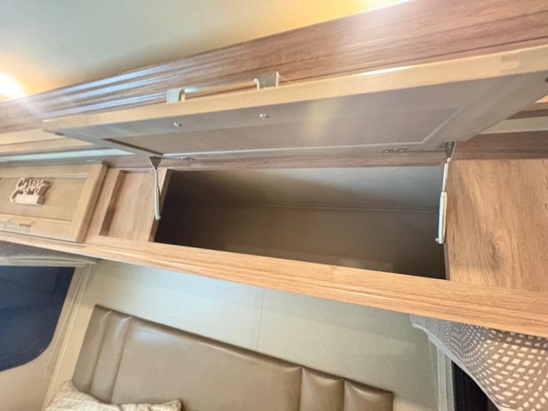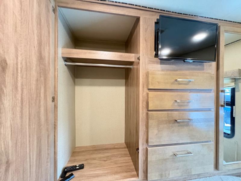 When it’s time to rest, retreat to a private bedroom area that offers a comfortable bed, wardrobe storage, and thoughtful touches that make winding down easy. The full bathroom includes a shower, toilet, and vanity, providing all the amenities you need while traveling. Smart storage solutions throughout the coach help keep gear and personal items organized, so your space stays neat from start to finish.