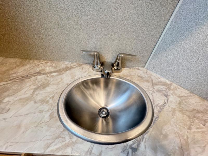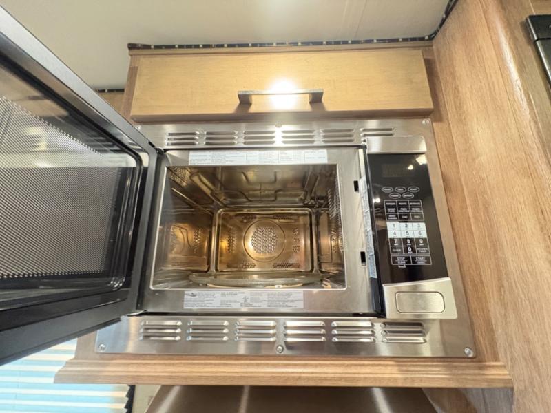 The fully equipped kitchen is designed for convenience and everyday living. Featuring a residential-style refrigerator, cooktop, microwave, and generous counter space, preparing meals becomes part of the fun. Whether it’s coffee in the morning or dinner after a scenic hike, you’ll appreciate the practicality and style this kitchen delivers.