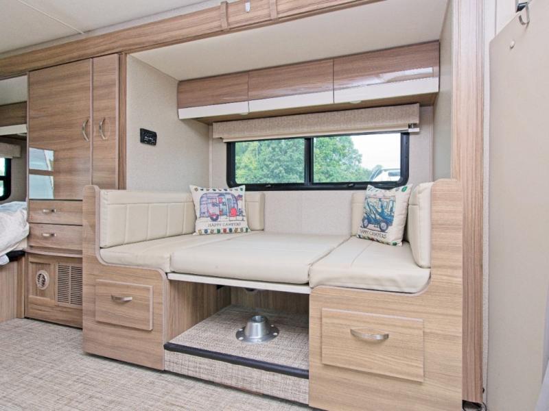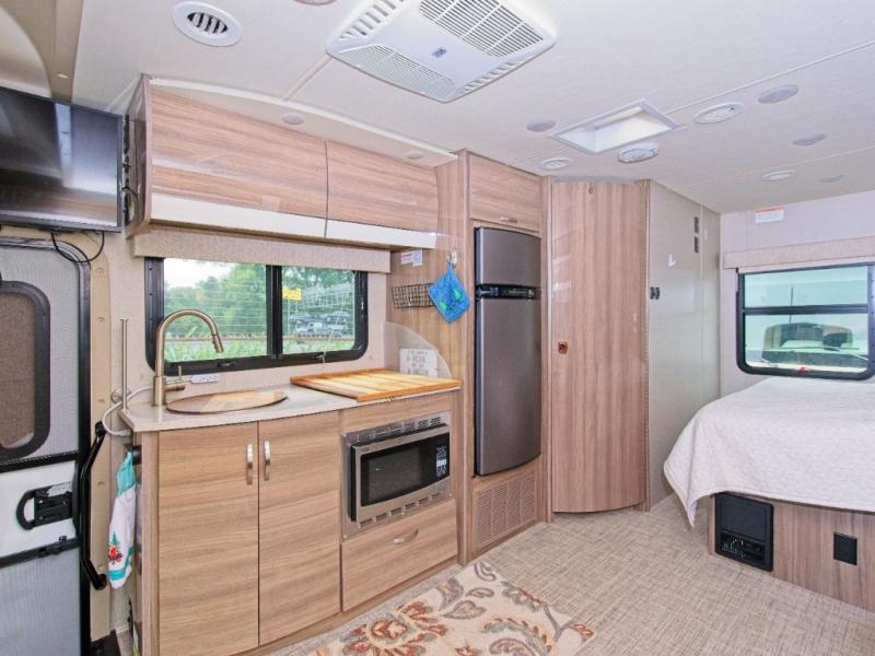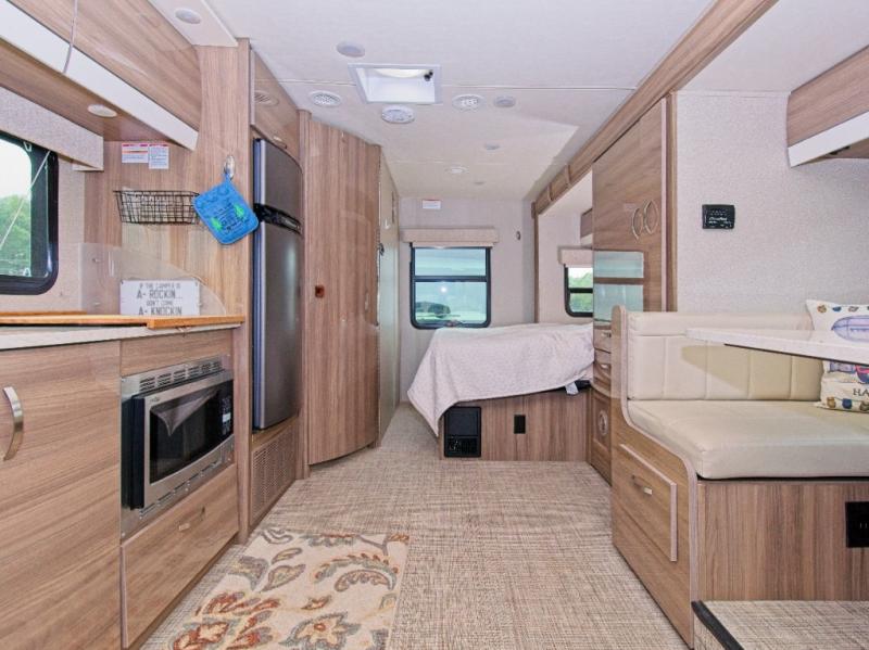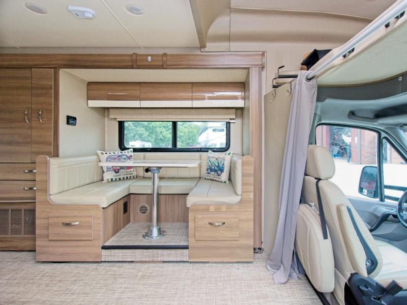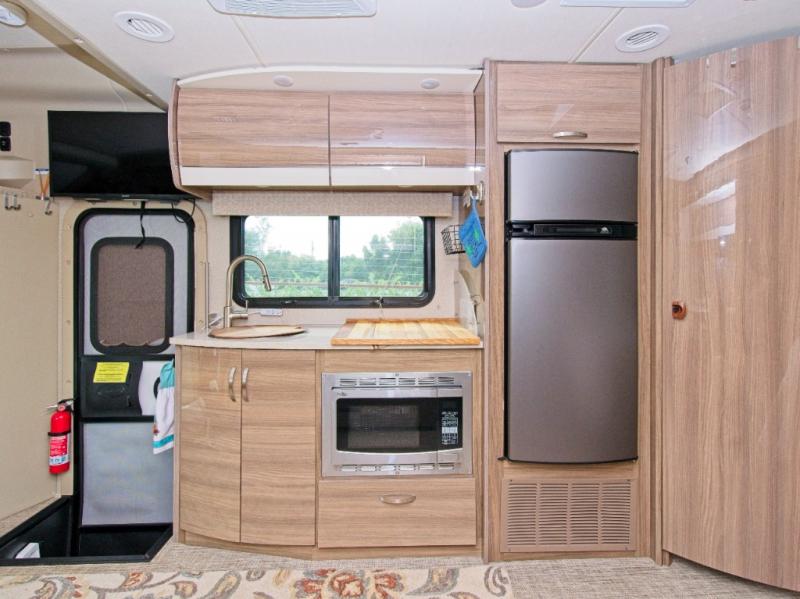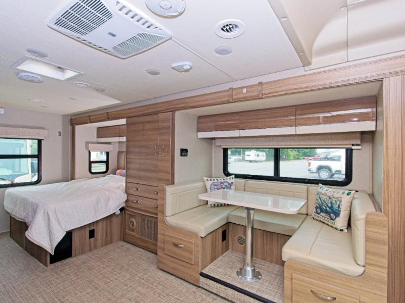 Step inside and be greeted by woven vinyl flooring that adds elegance and durability, paired with Ultraleather seating for a luxurious touch. Recessed LED ceiling lights create a warm ambiance, and day/night roller shades let you control natural light with ease.