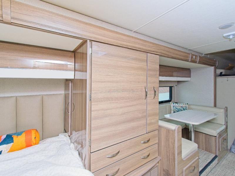 Enjoy cooking on the road with a 2-burner cooktop, 6 cu. ft. refrigerator, and a spacious kitchen pantry for all your ingredients. The large wardrobe ensures you never have to leave essentials behind, while the 32" LED TV in the living area keeps everyone entertained—even the driver can join in the fun thanks to its smart placement.
