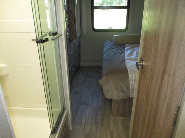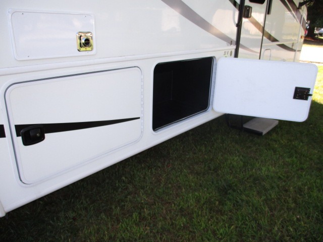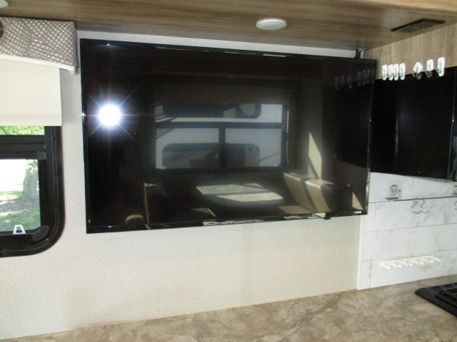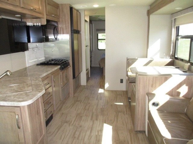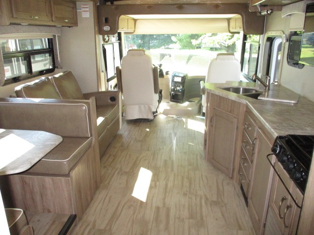 Travel comfortably in this Vision Class A gas motorhome on a full-time basis or on several weekend excursions! With two slides providing ample space indoors and the amount of outside storage available, you can pack it all for however long you decide to travel! The interior is an inviting space for a couple or anyone who enjoys traveling with friends, and it is also great for entertaining either inside or outside since there is a spacious living area that includes a sofa, booth dinette, and LED TV for your viewing pleasure. Outside, you can kick back in your camp chair and enjoy the entertainment center with an LED TV, or set up your corn hole boards for a friendly game or two. The 16' electric awning with LED lighting will keep your outdoor night activities going until everyone is sleepy and ready to head to bed.