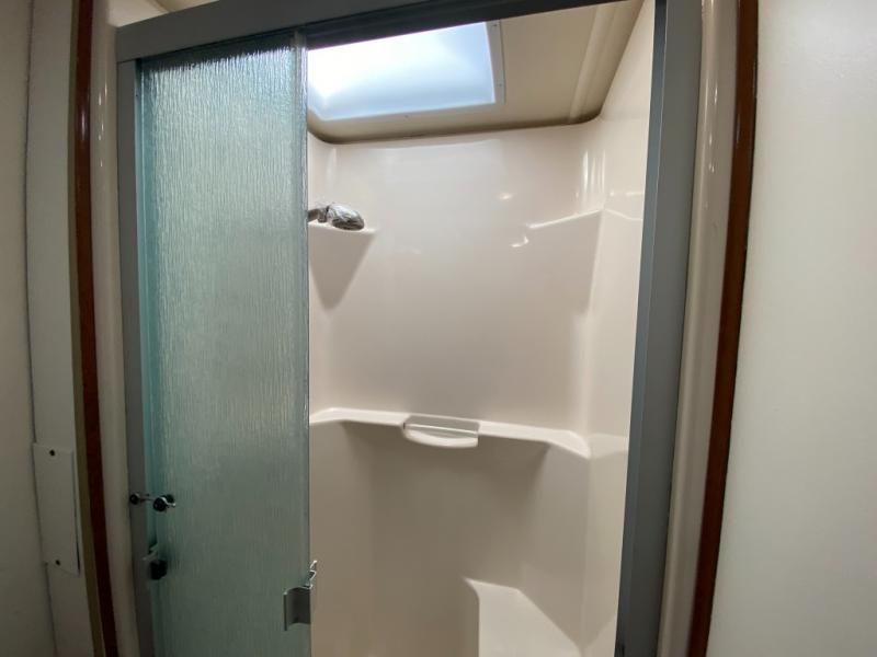 You will love this motorhome with a full wall slide that opens up the whole unit and provides added interior space. This unit features two full baths, each with a large shower with a seat, plus a shower skylight. The bunk beds are the perfect addition for those traveling with children. The 24" TV opposite of the bunks gives you the option to enjoy TV easily from the bunks or convert this area into a wardrobe and seating area for TV and gaming instead. Mom will love the kitchen with a residential refrigerator, ample counter space, plus a pantry/storage. This motorhome also includes a fireplace with a 40" TV, plus an exterior entertainment center with a 40" TV for all your viewing needs!