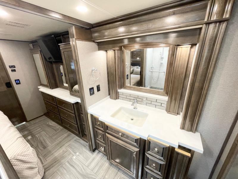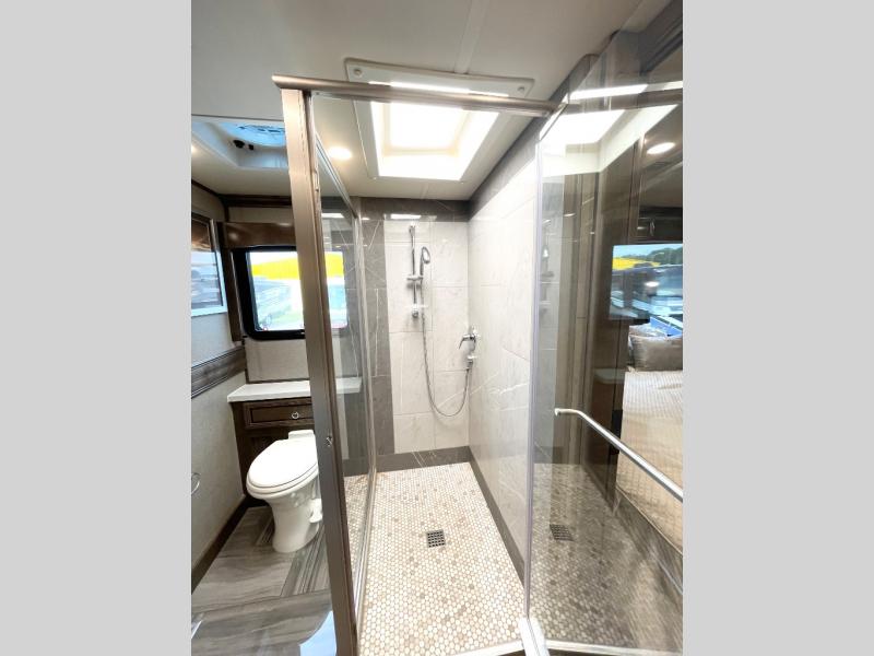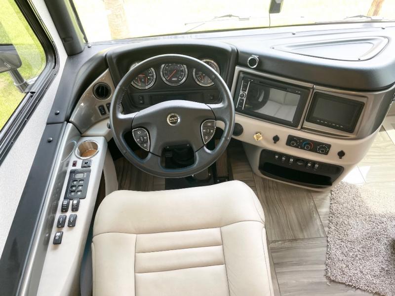 With any Fleetwood Discovery LXE class A diesel coach you will enjoy the journey and the destination. Each model has a Power Bridge chassis on the Freightliner XCM Series with a Cummins ISL 9L diesel engine, plus luxury features and technology throughout. The driver will appreciate the 10.2" Magnadyne radio touch screen with Bluetooth, navigation, App store and Wifi, the 55 degree wheel cut, the 18" Smart steering wheel with leather wrapped rim, and the 7" backup color monitor. You will love the living room floor heat on those cooler evenings, the feel and look of the residential style furniture and the polished porcelain tile flooring throughout, plus there is many more upgrades that will allow you to explore in comfort and modern style!