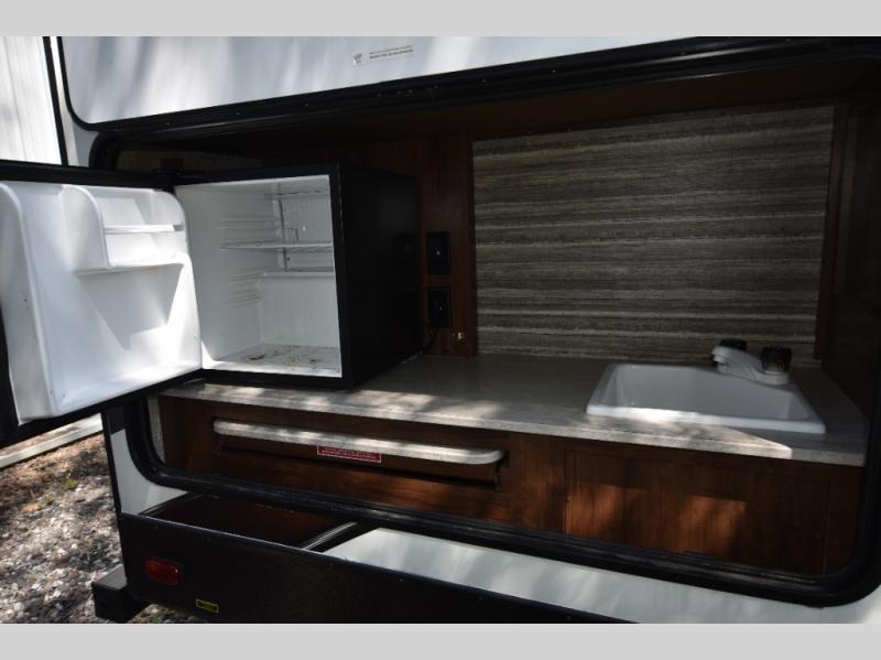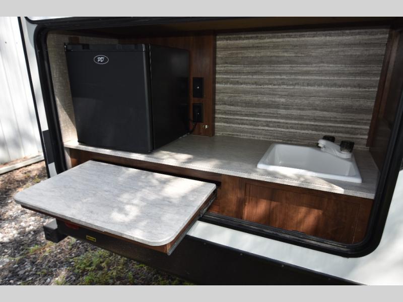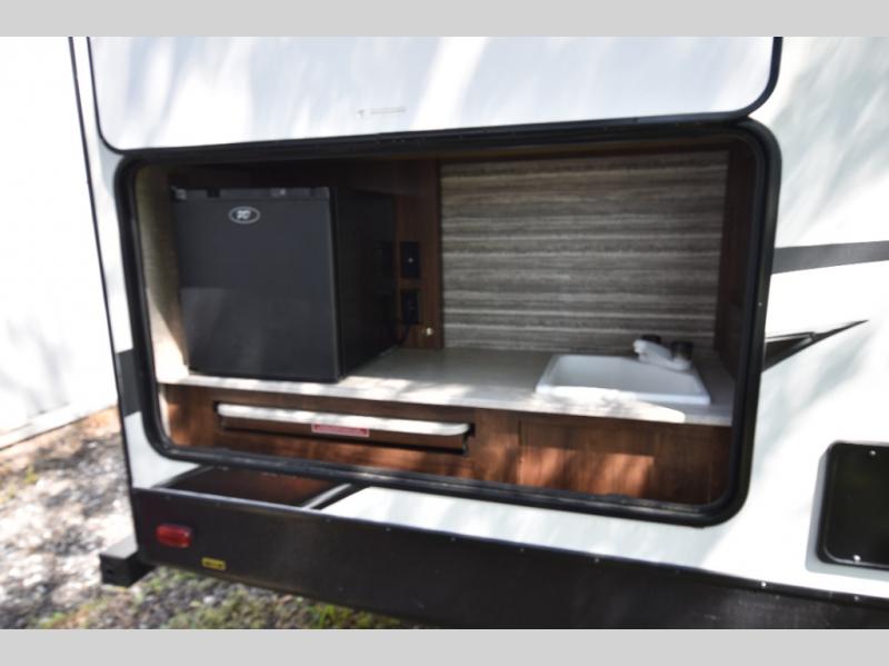 The chef of your group is going to love camping in this outdoor kitchen Mallard Ultra Lite travel trailer which also features a rear kitchen layout to give you more walking around space and make your meal prep even easier! While the chef is whipping up their best creation, you can relax and socialize with them and the rest of your group on either one of the two recliner chairs or across from those are the sofa and the booth dinette, both of which can transform into extra sleeping spaces when you need them. The dual entry bath is convenient for everyone to access, especially whoever stays in the front private bedroom!