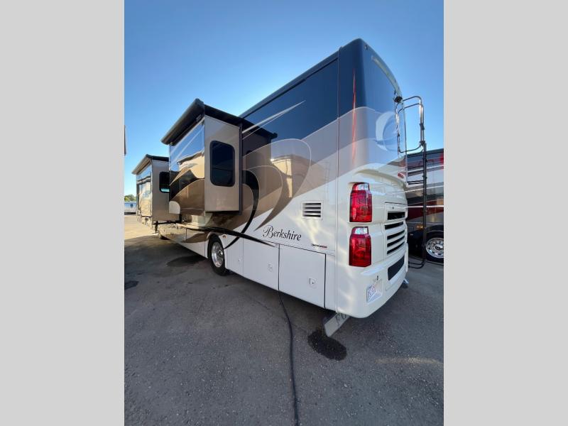 This Berkshire Class A diesel motorhome by Forest River RV is just beautiful! This unit features three large slides, a full rear bathroom, and a half bath for your convenience. Relaxation is taken to a whole new level with the two recliner chairs, the 48" sofa with a JBL soundbar, and the 40" LED TV with an optional fireplace to complete the ambiance. When you're ready to hit the sack, jump into the 72" x 80" king-size bed and watch your favorite movie on the 32" LED TV!
