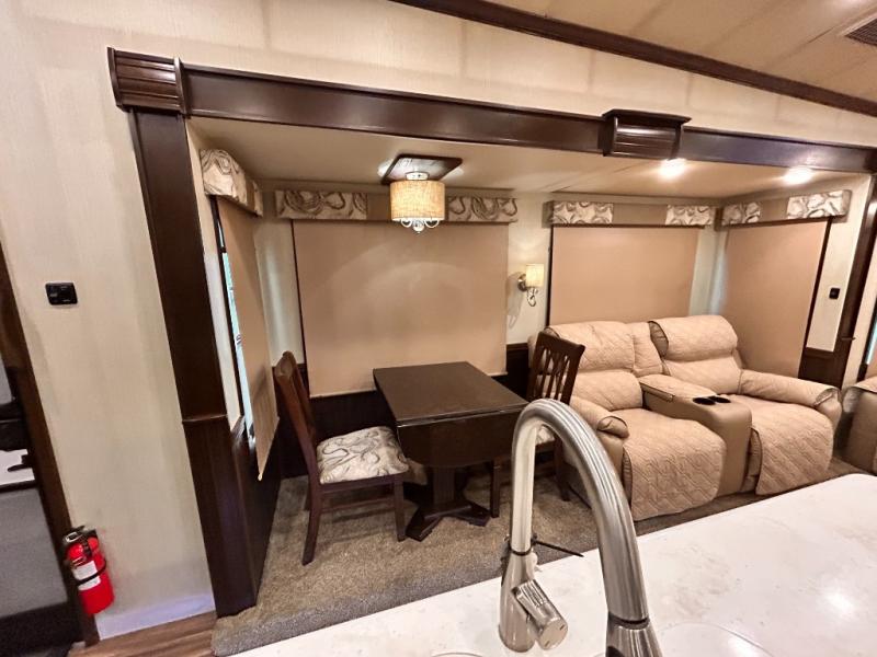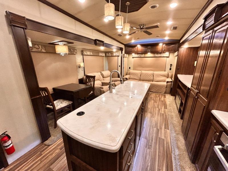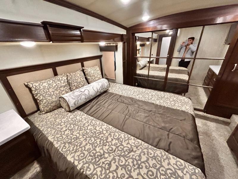 Your family will make many camping memories with this 3850RLX Cardinal Luxury fifth wheel. There is plenty of space to move around thanks to the triple slide outs, plus you will find plenty of storage space with all of the overhead cabinets. The kitchen island with double sink will make cooking quicker and easier for you. Along the rear wall there is a 90" hide-a-bed sofa where you can sit and relax. The private bedroom has a king bed so that you can get a good night's rest!
