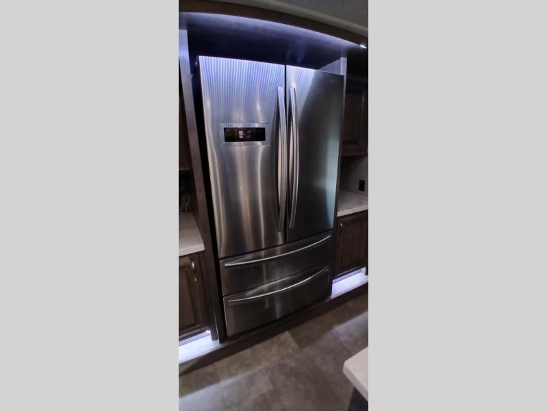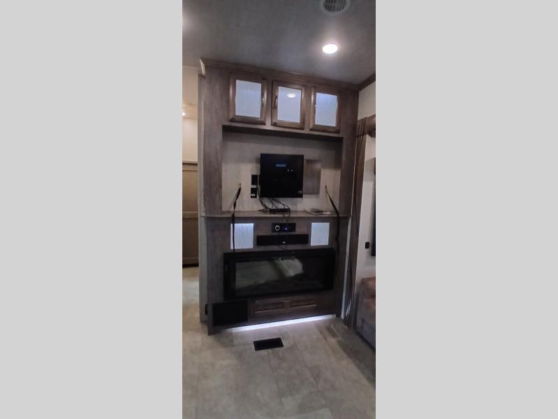 Whether you are looking to set out in a new permanent residence, or you prefer to vacation with the family on the weekends, this Cedar Creek Champagne Edition fifth wheel will be accommodating for just about anything. You won't miss home once you step foot into this unit because everything you could want has been included, like a 48" fireplace with remote-controlled regulated heat, a 20 cubic foot refrigerator, and an area prepped for a washer/dryer. On top of all of that, you will also find two electric awnings with LED night lighting on the exterior portion of this model which will extend your living space even further.