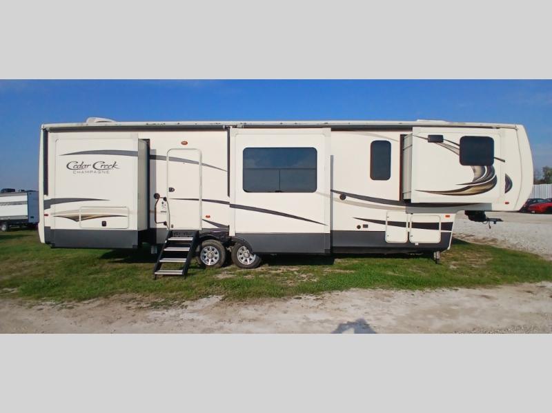 As the smart choice for the experienced RV'er, the Cedar Creek Champagne Edition fifth wheel by Forest River delivers luxury all throughout its all-aluminum super structure. From the Nev-R-Adjust® brakes and E-Z Lube® heavy-duty axles to the automatic 6-point hydraulic leveling system and keyless entry, the Cedar Creek Champagne Edition will never disappoint! Residential amenities are located throughout the interior.