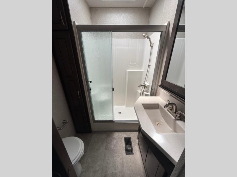 Experienced RV'ers appreciate the Cedar Creek Cottage destination trailer by Forest River which feature a design to withstand rugged road conditions and extreme temperatures. Each model has a Jensen Home Theater System which includes a 50" LED TV, CD/DVD player, AM/FM stereo, and J-Control App for your smart devices. You'll appreciate a solid wood dresser in the bedroom for all your clothes and a space that has been prepped for an optional washer and dryer. The bathroom features an 18" tall porcelain toilet and a large, double stack bathroom mirror medicine cabinet with overhead makeup lights and in the kitchen the crown molding complements all the overhead cabinets to add luxury. The You will receive one-year of the Coach-Net Roadside Assistance and a free membership to the Forest River Owner's Group as well. It's time to see why a Cedar Creek Cottage is right for you!