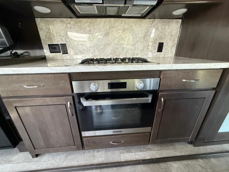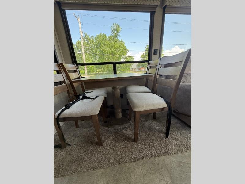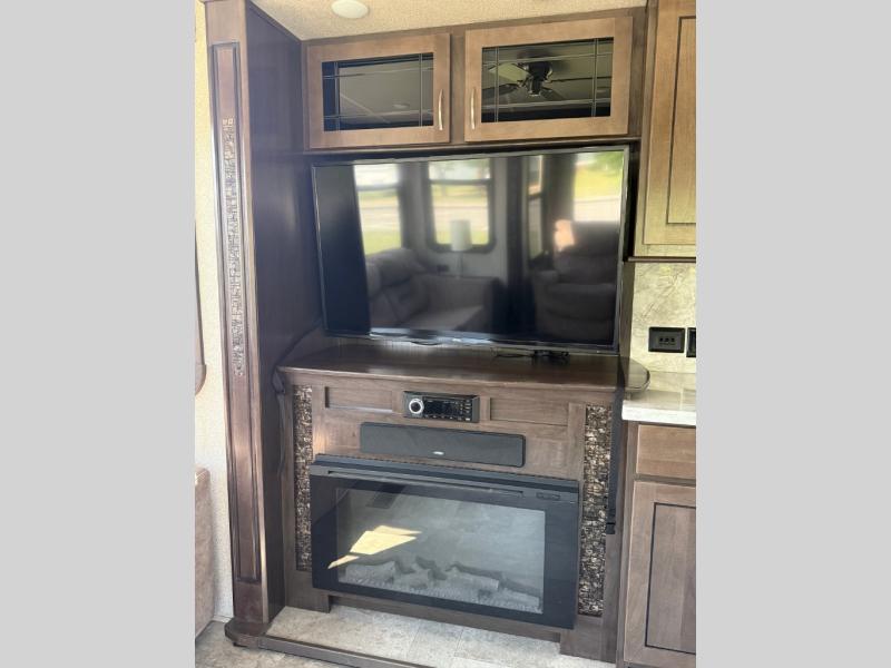 This Cedar Creek Cottage is ready for your next destination! The dual opposing slides in the living and kitchen area open up the whole space and make it feel just like home, plus there is a slide out in the front bedroom for even more space! Mom and dad will enjoy their king bed, and a large wardrobe for all their things. After spending the day at the lake, get cleaned up in the full bath that includes a shower with a seat, then head to the rear living area to relax on the sofa. You can choose to watch a movie with your family or just enjoy the 36" fireplace. This unit features a free standing table and lounge chairs for dining and extra seating space. After dinner, head outdoors to enjoy the LED lights under the 18' electric awning!
