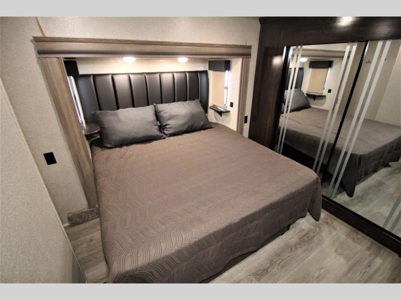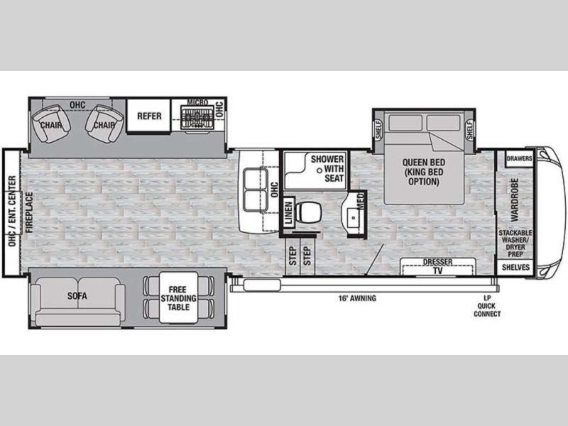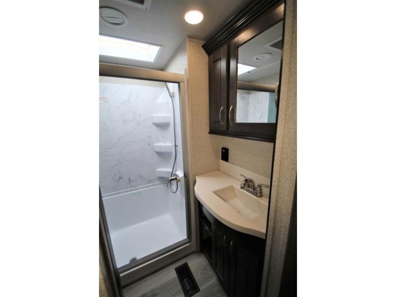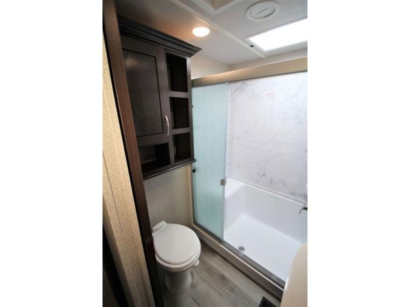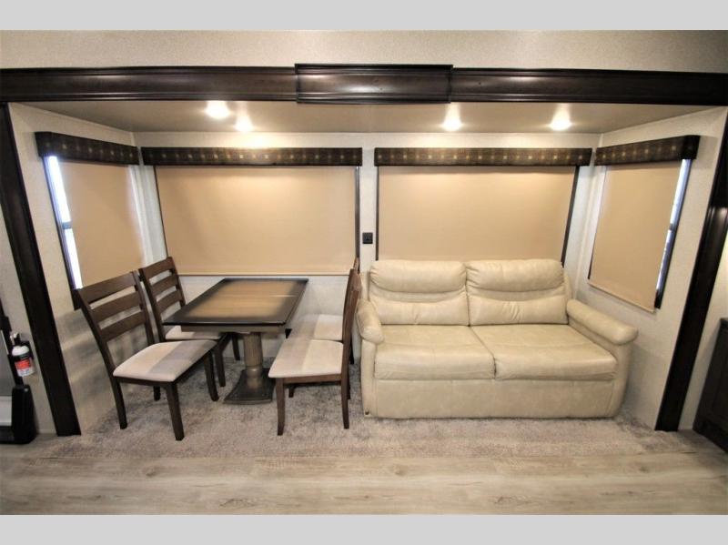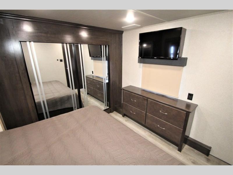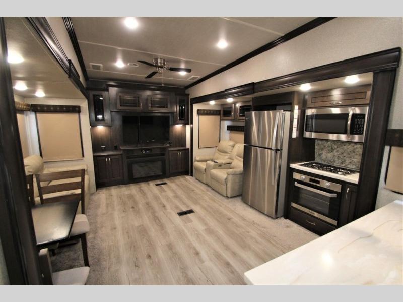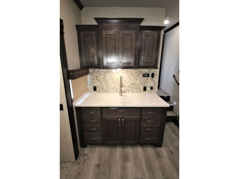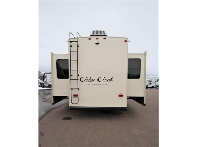 With any Forest River Cedar Creek Silverback Edition fifth wheel you will find Congoleum carefree flooring throughout and in the dining slide there is Shaw carpeting. The kitchen has everything that you would expect to find at home and more from the Furrion chef's kitchen with a gas cooktop, to the full panel backsplash, you won’t be disappointed! The 36" electric fireplace, the Jensen 12 volt CD/DVD/AM/FM/MP3/USB stereo system with a smart control app and Bluetooth, and the 50" LED TV with a swing arm in the living room are sure to be crowd pleasers! Each fifth wheel is constructed with Cedar Creek's famous all aluminum super-structure with a radius wrap metal skirt, and a Z-frame. Plus each comes with a Dexter safety and performance package which includes Dexter axles/brakes/suspension, and a Dexter E-Z flex rubber equalization system with bronze bushings and six greased zerks per side. You are sure to love camping in any one of these Forest River Cedar Creek Silverback fifth wheels so come choose your favorite one today!