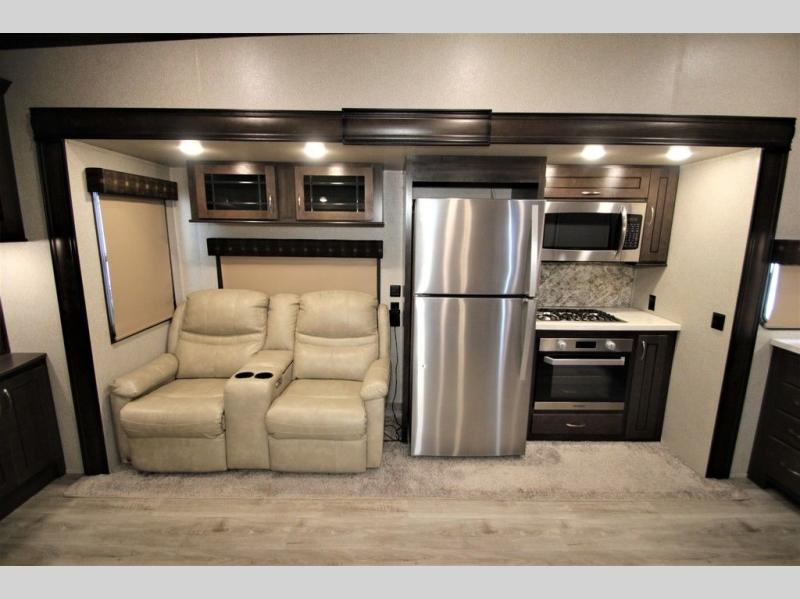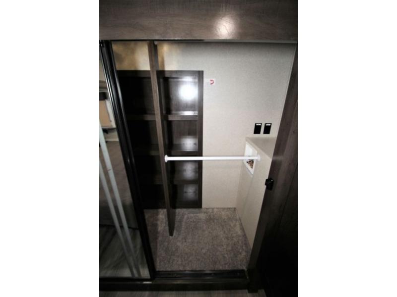 Start your next camping trip with this Cedar Creek Silverback fifth wheel 29RE by Forest River. This model features triple slide outs with two dual opposing slides in the rear of this model to help maximize the floor space. Enjoy watching your favorite shows or movie at the rear entertainment center in either one of the recliner chairs or on the sofa. And for those chilly evenings you can enjoy the electric fireplace. The kitchen area features a free-standing table with seating for four plus along the interior wall there is extra counter space and a double sink with a high rise faucet to make clean up a breeze. When you are ready to call it a day, then head up the stairs to the front private bedroom. Here you will find a Denver 8" queen mattress or you can choose an optional king. The front wardrobe features plenty of storage plus it is also prepped for an optional stackable washer and dryer!