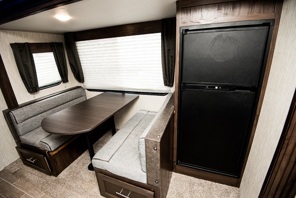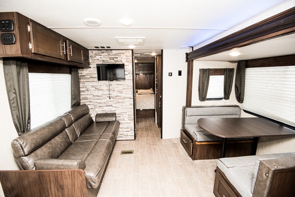 No matter which Cherokee model by Forest River you choose, you can rest assured knowing that each unit is built to provide you with great value, comfort, and style making it easy to get up and go as soon as the urge strikes. Each model features two-toned exterior metal and upgraded graphics, a one-piece rubber roof with 3/8" walkable roof decking, and a front stone guard for protection. Inside of each unit, you will enjoy comfortable seating and mocha-stained shaker-style cabinets. There are also a variety of optional packages available that will provide additional features, like the Base Camp Package, the Campfire Package, and the Limited Package. So when the open road calls, answer with your very own Cherokee travel trailer or toy hauler in tow!