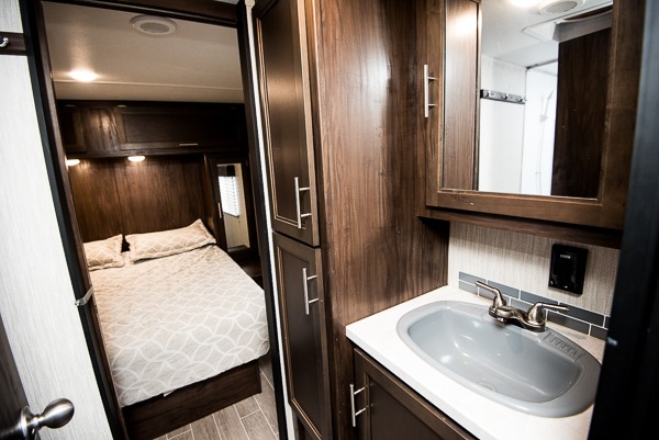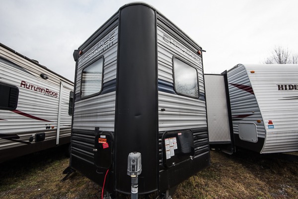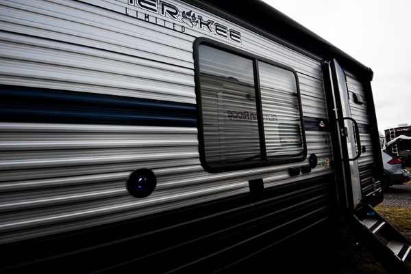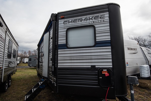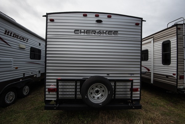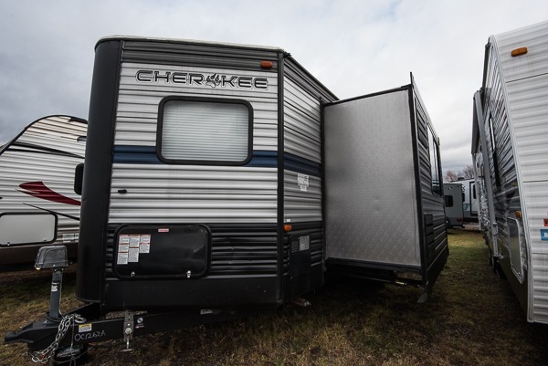 Get ready to enjoy each camping trip with your family when you choose to camp with this V-nose Cherokee travel trailer which allows for better aerodynamics. In the front is the spacious kitchen with plenty of counter space and a large sink to make clean up a breeze. The walk-through bath has doors along either side which adds convenience. You will also find that this model has two entry doors which make it easy to slip out in the early morning and head out to go fishing without waking up your sleeping campers. There is plenty of room to store all of your favorite camping gear in the exterior pass-through storage and additional outdoor storage area!