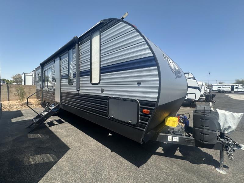 No matter which Cherokee model by Forest River you choose, you can rest assured knowing that each unit is built to provide you with great value, comfort, and style making it easy to get up and go as soon as the urge strikes. Each model features two-toned exterior metal and upgraded graphics, a one-piece rubber roof with 3/8" walkable roof decking, and a front stone guard for protection. Inside of each unit, you will enjoy comfortable seating and mocha-stained shaker-style cabinets. There are also a variety of optional packages available that will provide additional features, like the Base Camp Package, the Campfire Package, and the Limited Package. So when the open road calls, answer with your very own Cherokee travel trailer or toy hauler in tow!