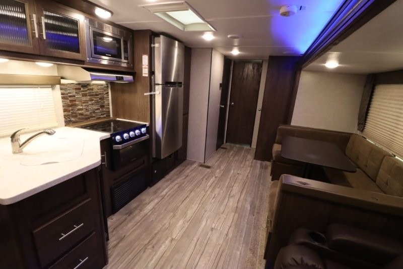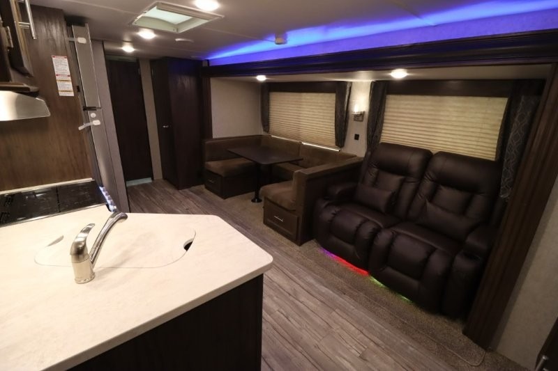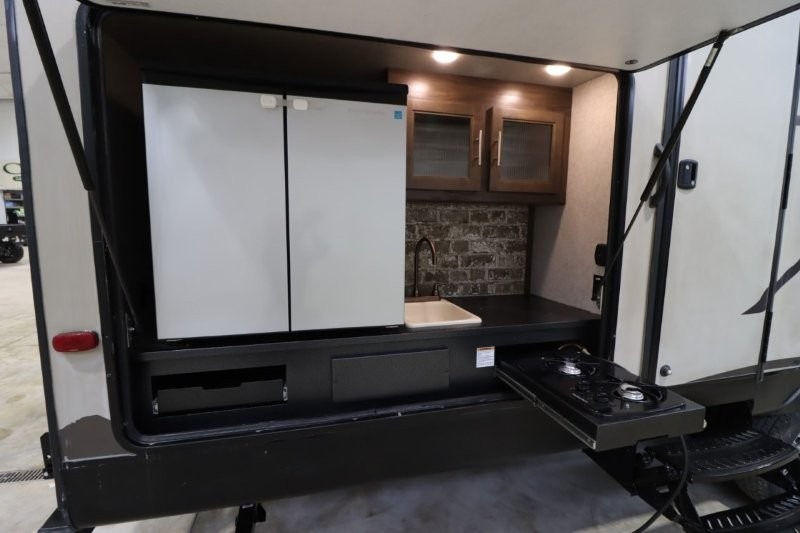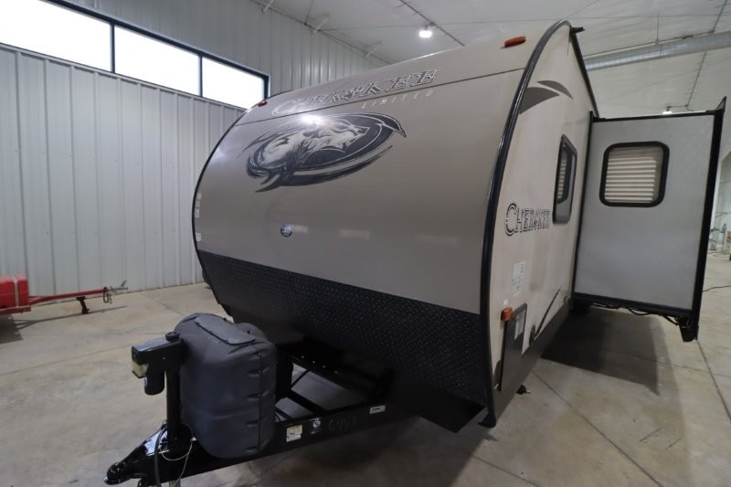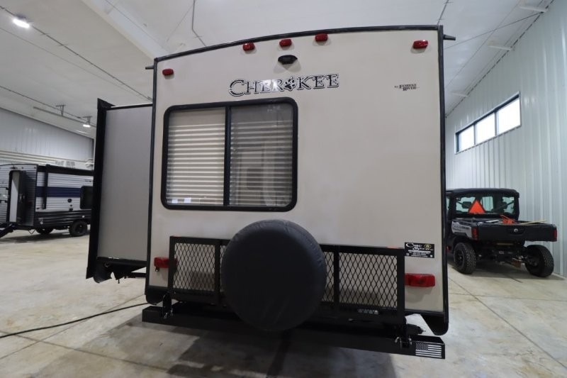No matter which Cherokee model by Forest River you choose, you can rest assured knowing that each unit is built to provide you with great value, comfort, and style making it easy to get up and go as soon as the urge strikes. Each model features two-toned exterior metal and upgraded graphics, a one-piece rubber roof with 3/8" walkable roof decking, and a front stone guard for protection. Inside of each unit, you will enjoy comfortable seating and mocha-stained shaker-style cabinets. There are also a variety of optional packages available that will provide additional features, like the Base Camp Package, the Campfire Package, and the Limited Package. So when the open road calls, answer with your very own Cherokee travel trailer or toy hauler in tow!
