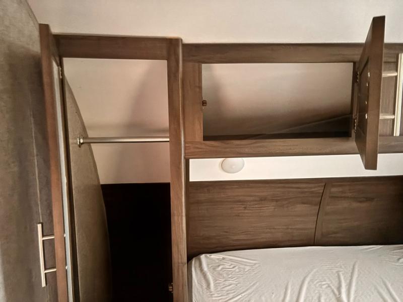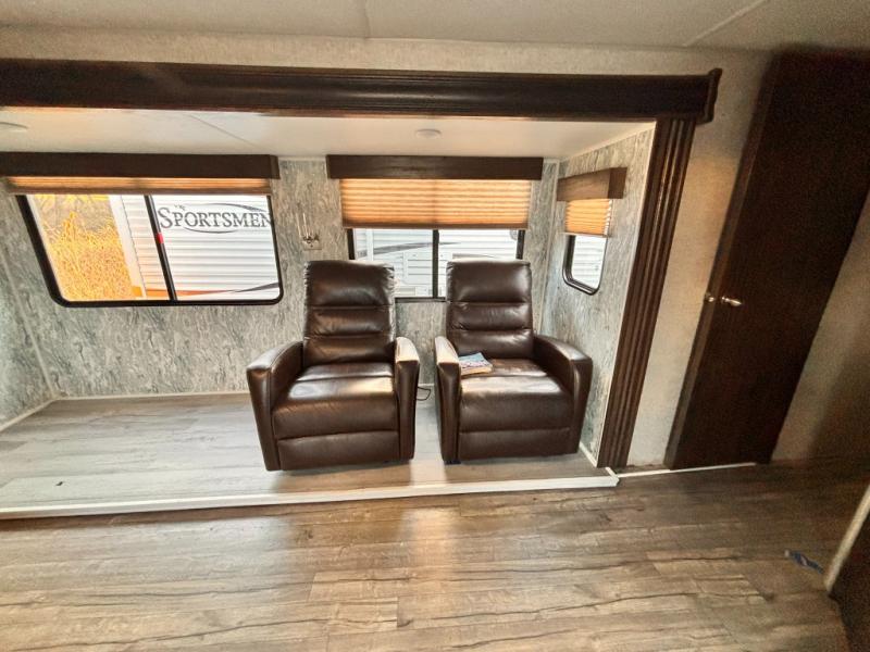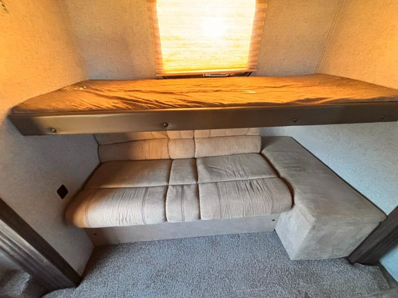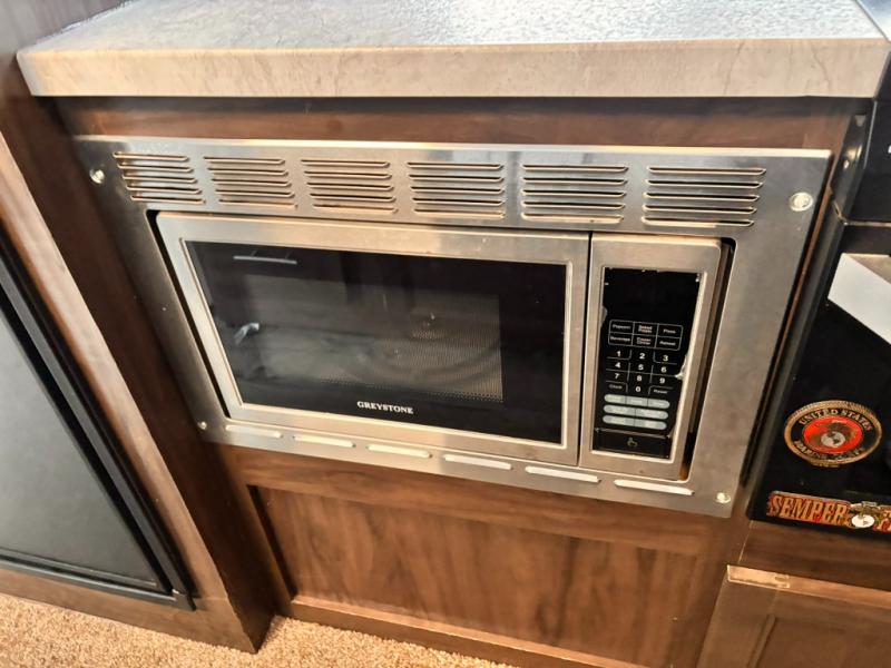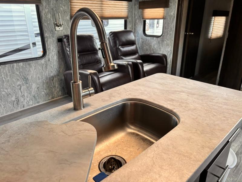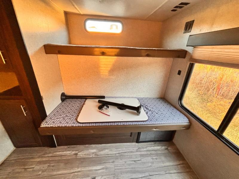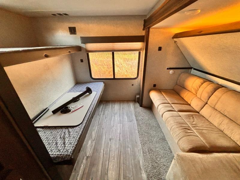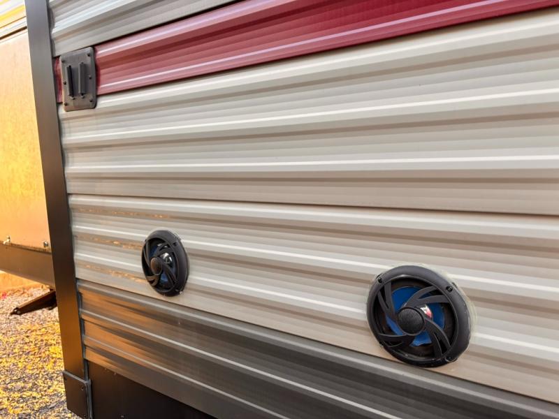 This is the ultimate family-friendly travel trailer! You will love all of the space inside this Cherokee travel trailer. From the three slides to the rear private bunkhouse for your kids, there is room for everyone and everything! The inside kitchen features a large island with a sink, plus a U-shaped dinette for you to enjoy your meals at. Throughout this model there are overhead cabinets, optional 40" storage drawers under the dinette, and exterior storage compartments. With the full outside kitchen, you can easily grab a snack from the 3.2 cu. ft. refrigerator or fix your meal on the two-burner pull-out stove top while watching your kids play.