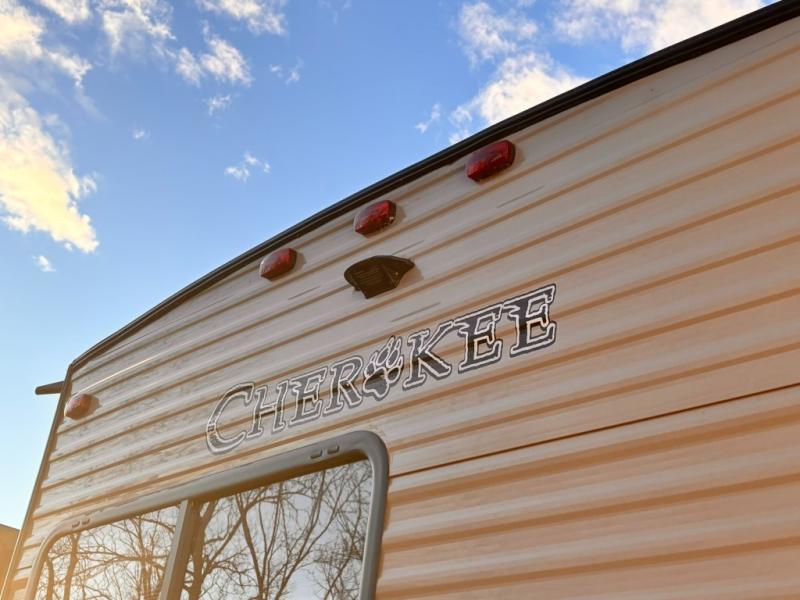 No matter which Cherokee model by Forest River you choose, you can rest assured knowing that each unit is built to provide you with great value, comfort, and style making it easy to get up and go as soon as the urge strikes. Each model features two-toned exterior metal and upgraded graphics, a one-piece rubber roof with 3/8" walkable roof decking, and a front stone guard for protection. Inside of each unit, you will enjoy comfortable seating and mocha-stained shaker-style cabinets. There are also a variety of optional packages available that will provide additional features, like the Base Camp Package, the Campfire Package, and the Limited Package. So when the open road calls, answer with your very own Cherokee travel trailer or toy hauler in tow!