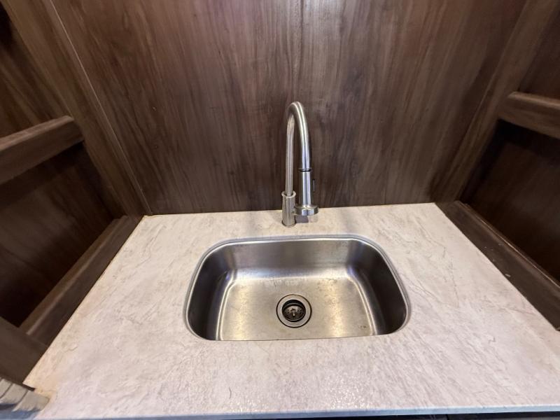 Private Master Bedroom: This trailer features a private master bedroom with a queen-size bed and plenty of storage options, ensuring you have a restful retreat after a day of adventure.