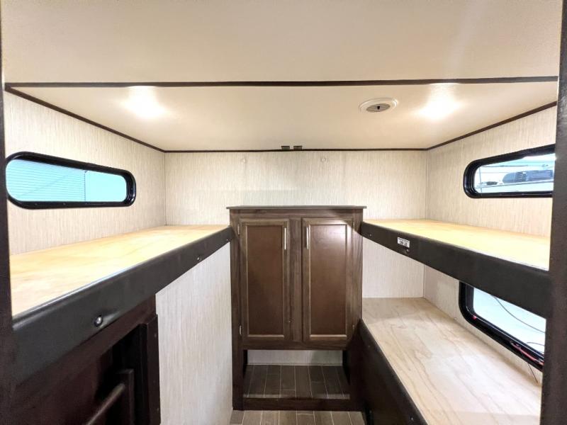 For the ultimate outdoor getaway that your family will talk about for years to come, you need this Cherokee Alpha Wolf travel trailer. With its ability to sleep nine people comfortably each night, this unit is a vital part of any summer vacation, and because this model contains both a private bunkhouse and a master suite, everyone will have their own separate living area. As you play outside in the hot sun and work up a sweat, you will appreciate being able to easily grab an icy cold beverage from the double-door refrigerator in the outdoor kitchen, and the 20' awning will provide shade whenever you need to take a break and cool down.