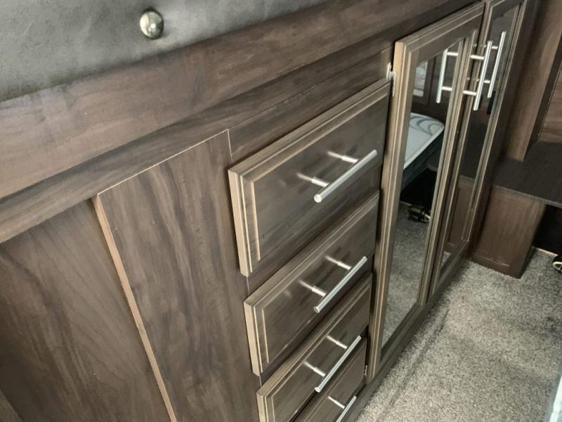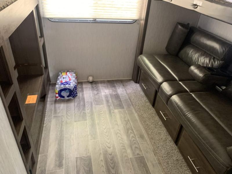 With enough space to sleep ten people during any upcoming adventure, this Arctic Wolf fifth wheel proves to be an important asset to those who travel with large families. The three slides that have been included allow this unit to provide both a full and half bath, and the private master suite, as well as the private bunkhouse, give you the seclusion you are accustomed to so that you can sleep peacefully each night in your own space.