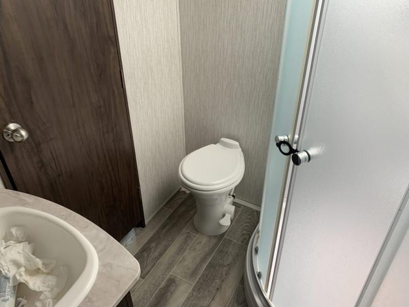 From its automatic leveling system to its 6' 4" slides with oversized panoramic windows, the Cherokee Arctic Wolf fifth wheel by Forest River provides luxurious conveniences at an entry level price point. The Arctic Wolf has been designed so that even light-duty trucks can tow it, yet the interior portion is still packed full with high-class amenities that will enhance your traveling experience, like the high circulation ceiling fan that adds to the character and functionality of the living area. Not only will you be thoroughly impressed with the Arctic Wolf, but so will everyone else that sees it because RV Pro has awarded the Arctic Wolf their "Best of Show" title.