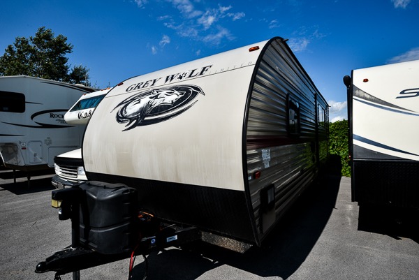 All Forest River Cherokee Grey Wolf models are quality built with distinct features and superior comfort in mind, and they are all set at an affordable price point. So, when you get the opportunity to escape the hustle and bustle of everyday life to enjoy all the beauty and wonder that an outdoor adventure holds, the Cherokee Grey Wolf is ready and waiting to help you relax and unwind. Each unit features an outdoor shower with hot and cold water for you to get cleaned up without tracking mud throughout after your adventurous hike, and with the RVQ quick connect, you can easily hook up a low-pressure grill to cook up your best burgers outdoors. Inside, you will enjoy the HDMI entertainment center, the LED lighting throughout, and a kitchen skylight with a shade, and if you get tired of being indoors during inclement weather, the outdoor power awning will provide protection.