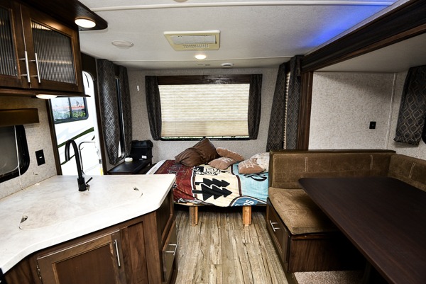 This Cherokee Grey Wolf travel trailer is perfect for your small family and will leave you planning your next outing before you are back from your current weekend away! You will find all of the comforts you need with plenty of livable space including a U-shaped dinette slide. There is also a sofa for more seating when company arrives, plus there are end tables on either side to prevent spills. A spacious walk-through bath leads to a front private bedroom where you will enjoy a great night's rest on a comfortable queen-size bed. You will find ample storage for clothing in the wardrobes that are above handy nightstands for your personal things. There are even lights mounted above the bed on each side which makes it easy to read a couple of chapters before drifting off to sleep.