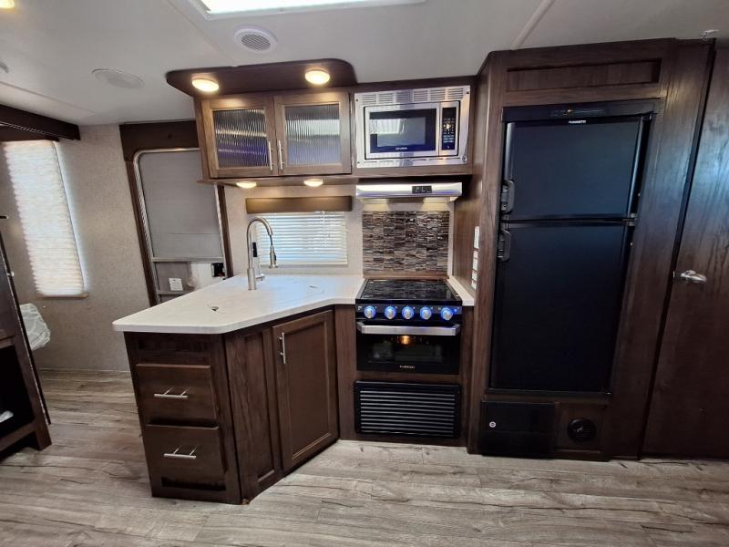 All Forest River Cherokee Grey Wolf models are quality built with distinct features and superior comfort in mind, and they are all set at an affordable price point. So, when you get the opportunity to escape the hustle and bustle of everyday life to enjoy all the beauty and wonder that an outdoor adventure holds, the Cherokee Grey Wolf is ready and waiting to help you relax and unwind. Each unit features an outdoor shower with hot and cold water for you to get cleaned up without tracking mud throughout after your adventurous hike, and with the RVQ quick connect, you can easily hook up a low-pressure grill to cook up your best burgers outdoors. Inside, you will enjoy the HDMI entertainment center, the LED lighting throughout, and a kitchen skylight with a shade, and if you get tired of being indoors during inclement weather, the outdoor power awning will provide protection.