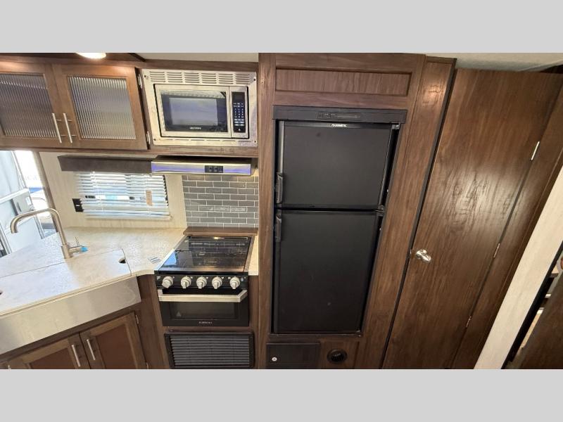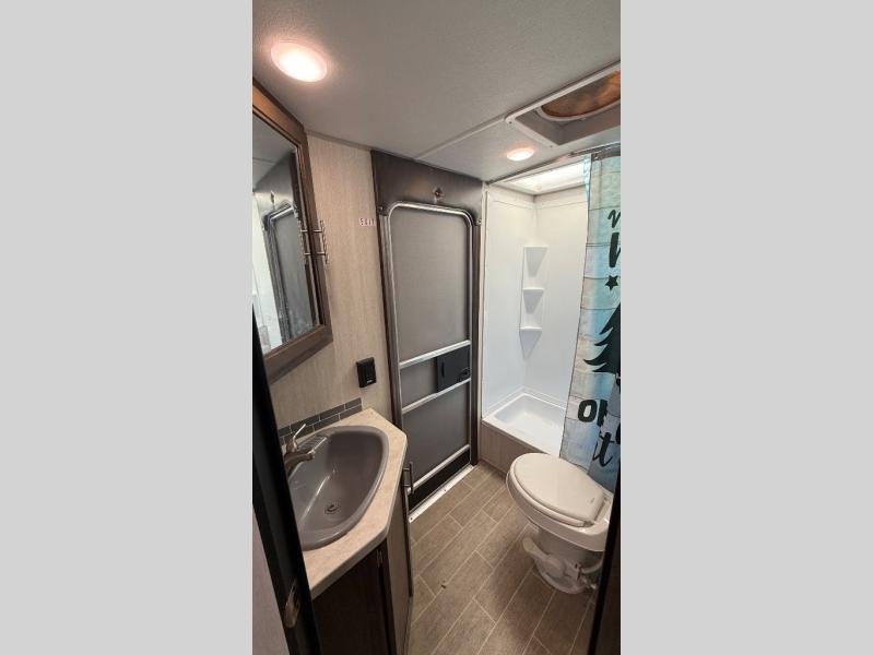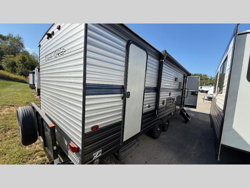 All Forest River Cherokee Grey Wolf models are quality built with distinct features and superior comfort in mind, and they are all set at an affordable price point. So, when you get the opportunity to escape the hustle and bustle of everyday life to enjoy all the beauty and wonder that an outdoor adventure holds, the Cherokee Grey Wolf is ready and waiting to help you relax and unwind. Each unit features an outdoor shower with hot and cold water for you to get cleaned up without tracking mud throughout after your adventurous hike, and with the RVQ quick connect, you can easily hook up a low-pressure grill to cook up your best burgers outdoors. Inside, you will enjoy the HDMI entertainment center, the LED lighting throughout, and a kitchen skylight with a shade, and if you get tired of being indoors during inclement weather, the outdoor power awning will provide protection.