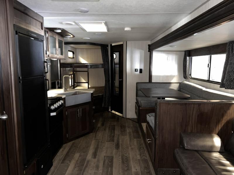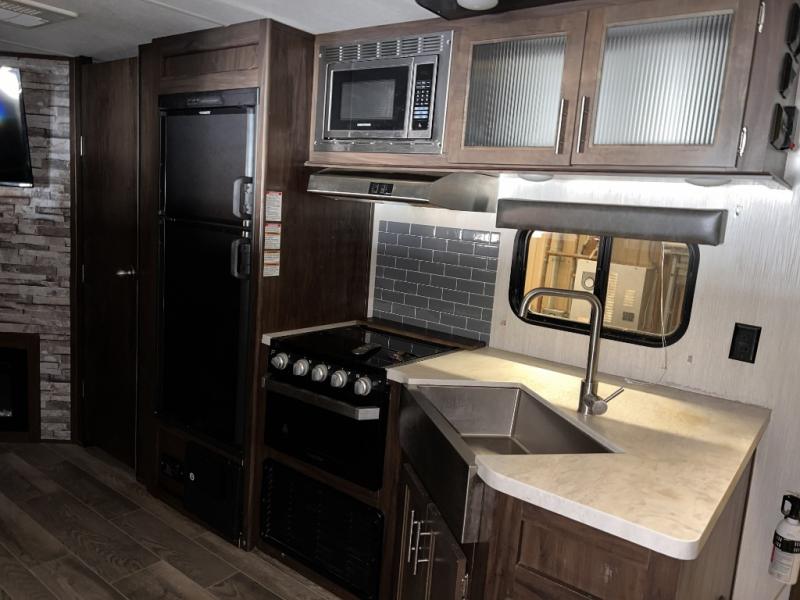 All Forest River Cherokee Grey Wolf models are quality built with distinct features and superior comfort in mind, and they are all set at an affordable price point. So, when you get the opportunity to escape the hustle and bustle of everyday life to enjoy all the beauty and wonder that an outdoor adventure holds, the Cherokee Grey Wolf is ready and waiting to help you relax and unwind. Each unit features an outdoor shower with hot and cold water for you to get cleaned up without tracking mud throughout after your adventurous hike, and with the RVQ quick connect, you can easily hook up a low-pressure grill to cook up your best burgers outdoors. Inside, you will enjoy the HDMI entertainment center, the LED lighting throughout, and a kitchen skylight with a shade, and if you get tired of being indoors during inclement weather, the outdoor power awning will provide protection.