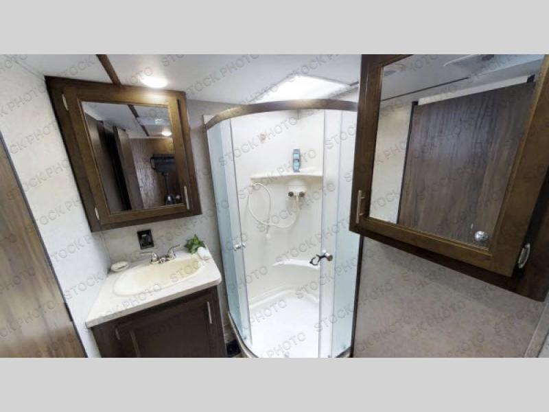 With any Cherokee Wolf Pack toy hauler, it is easy to keep the outdoor fun going all weekend long! There is plenty of room for a few dirt bikes, a four wheeler, or an ATV, and you can clean up from your excursions before coming indoors with the outside shower. Inside you will find comfortable conveniences, such as tongue and groove plywood floors, real wood doors and drawers, wood blinds, and an 8 cubic foot refrigerator. You will also appreciate having a 35,000 BTU furnace to keep the interior warm while you sleep at night.
